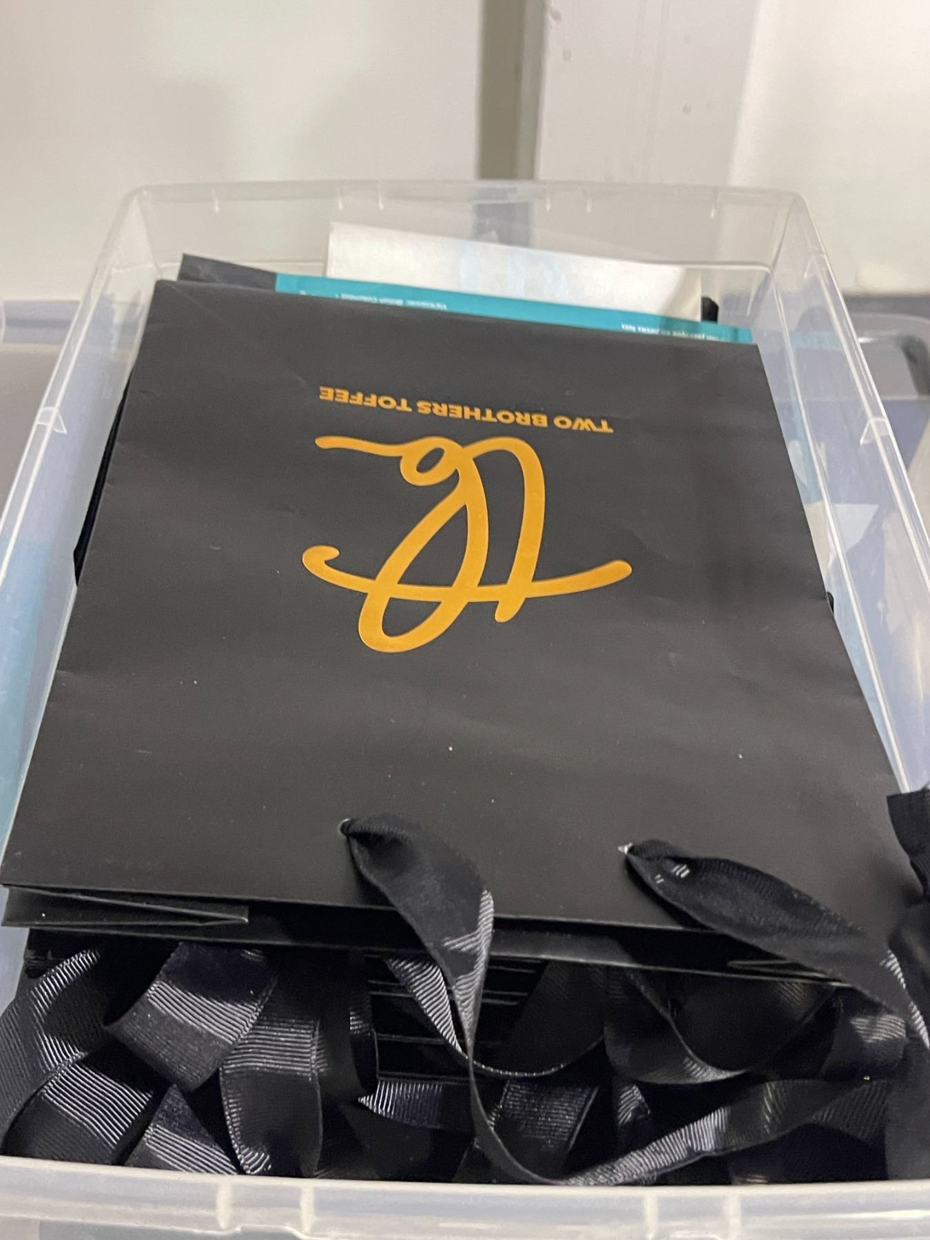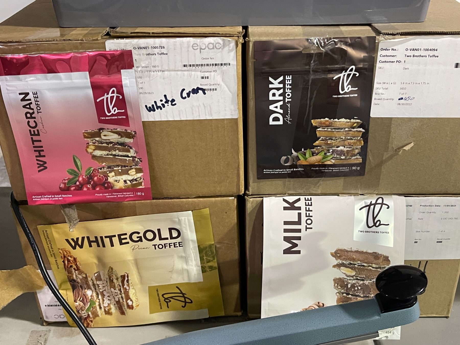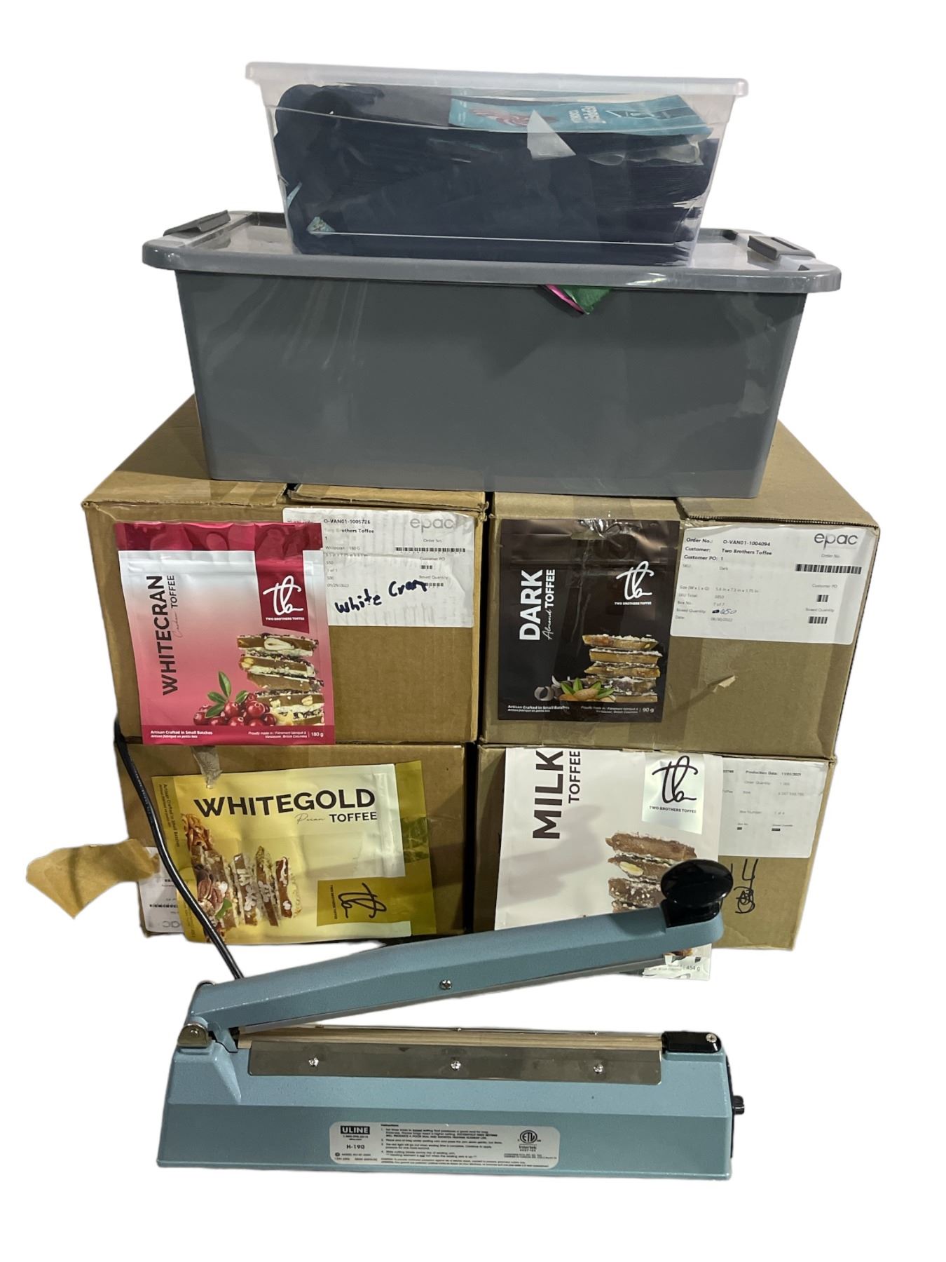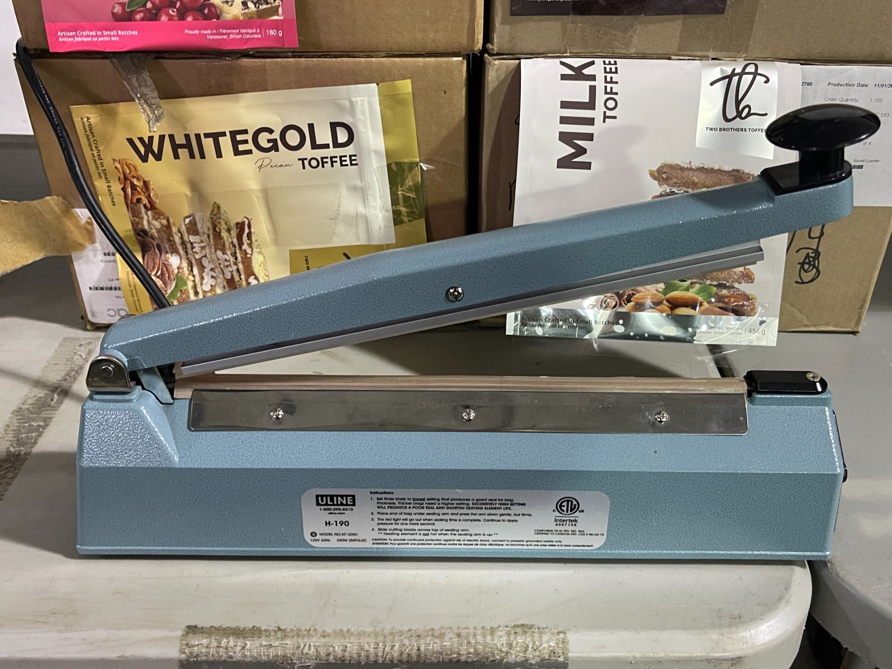 "Two Brothers Toffee" mylar bags / packaging - Uline heat sealer for mylar bags