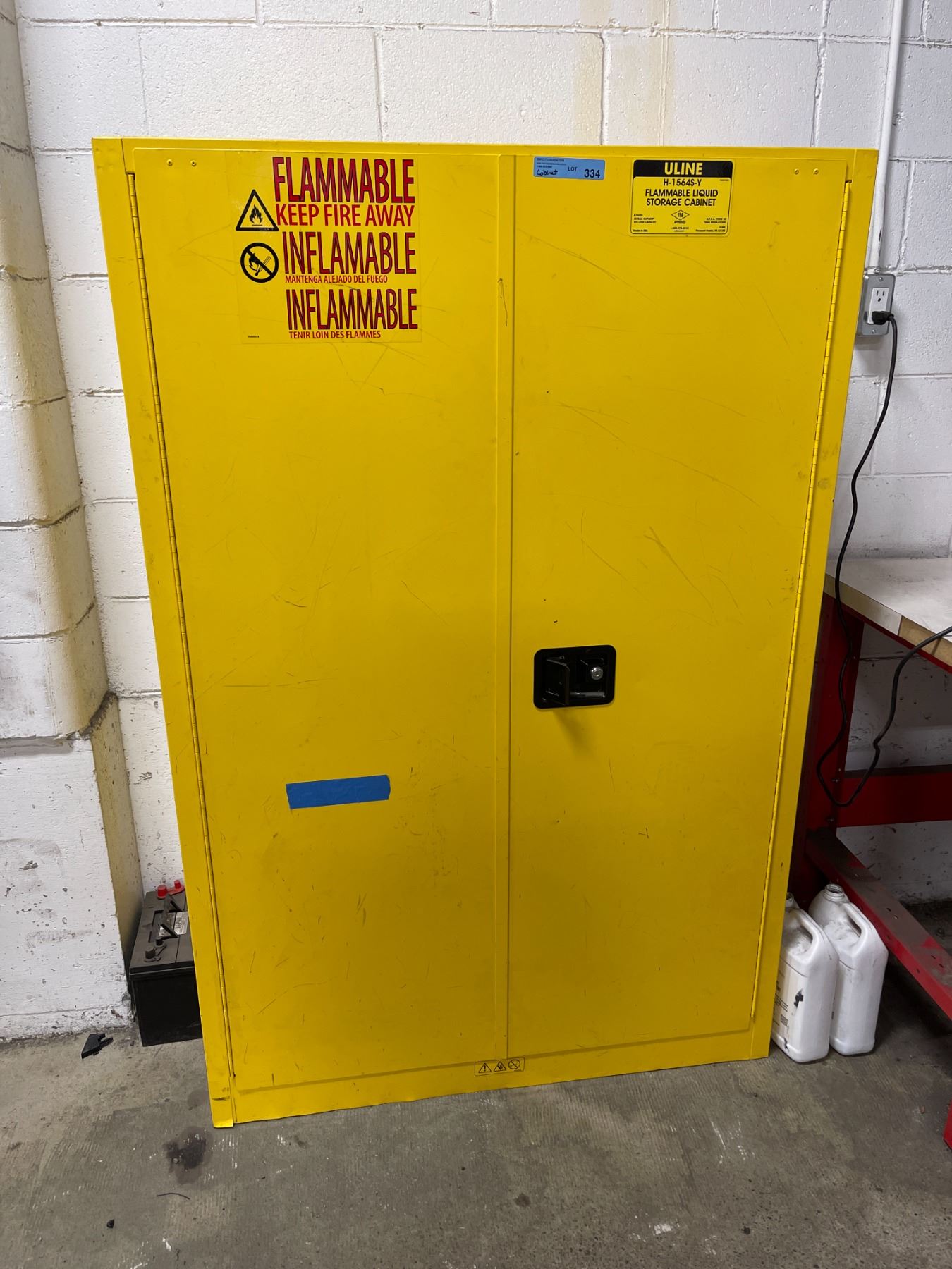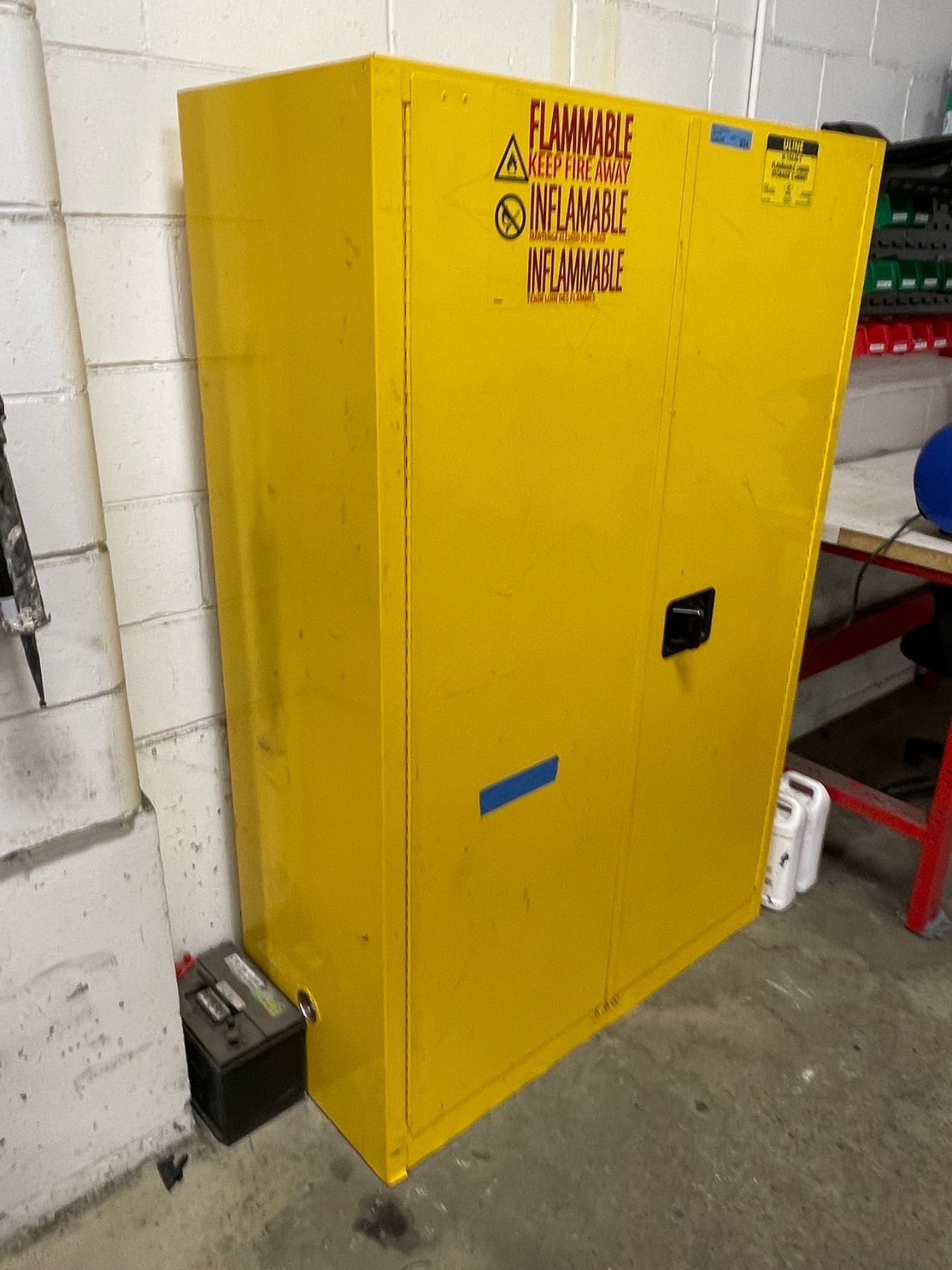 Uline flammable liquid storage cabinet w/ 3 adjustable shelves - 43x18x65"