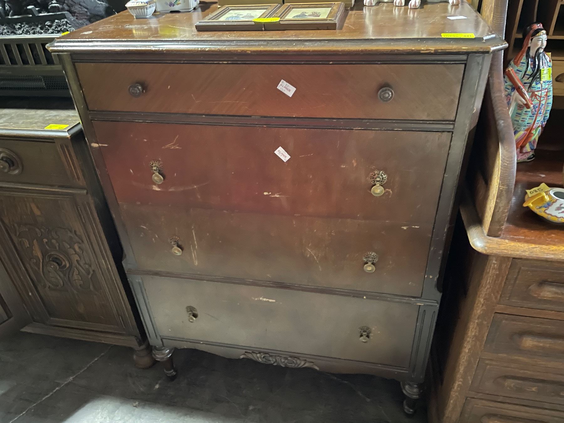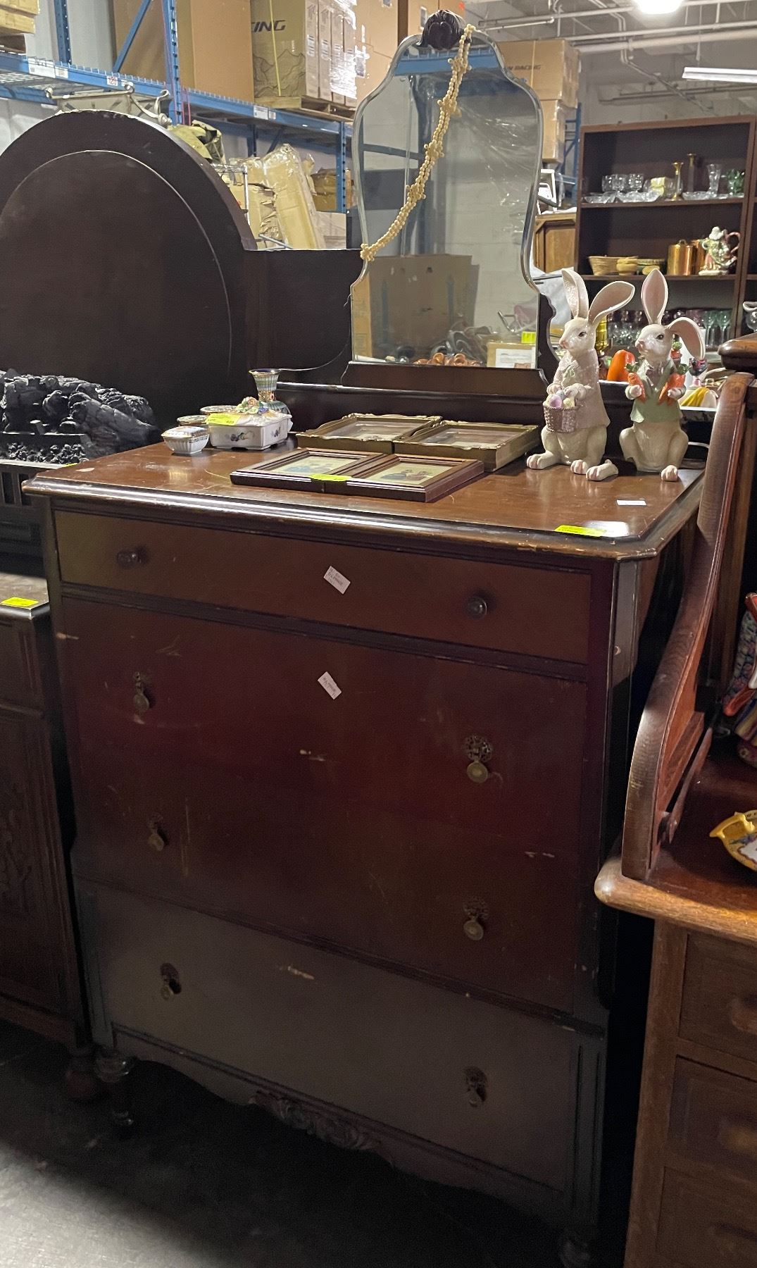 Vintage 4 Drawer Dresser with Original Mirror - Base is 20" x 34" x 45" tall. Contents not included.