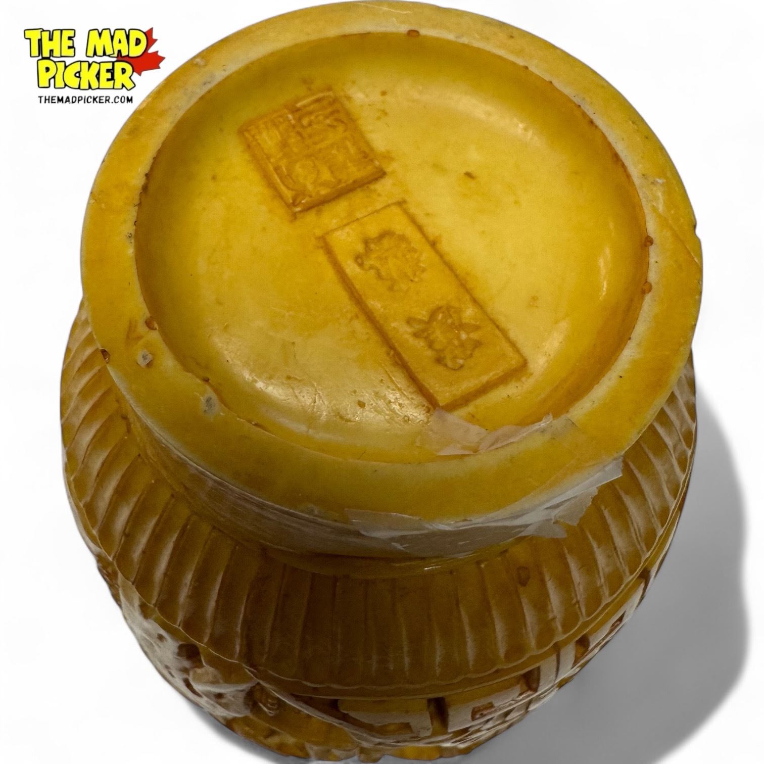 Vintage Asian Carved Yellow Cinnabar Ginger Jar