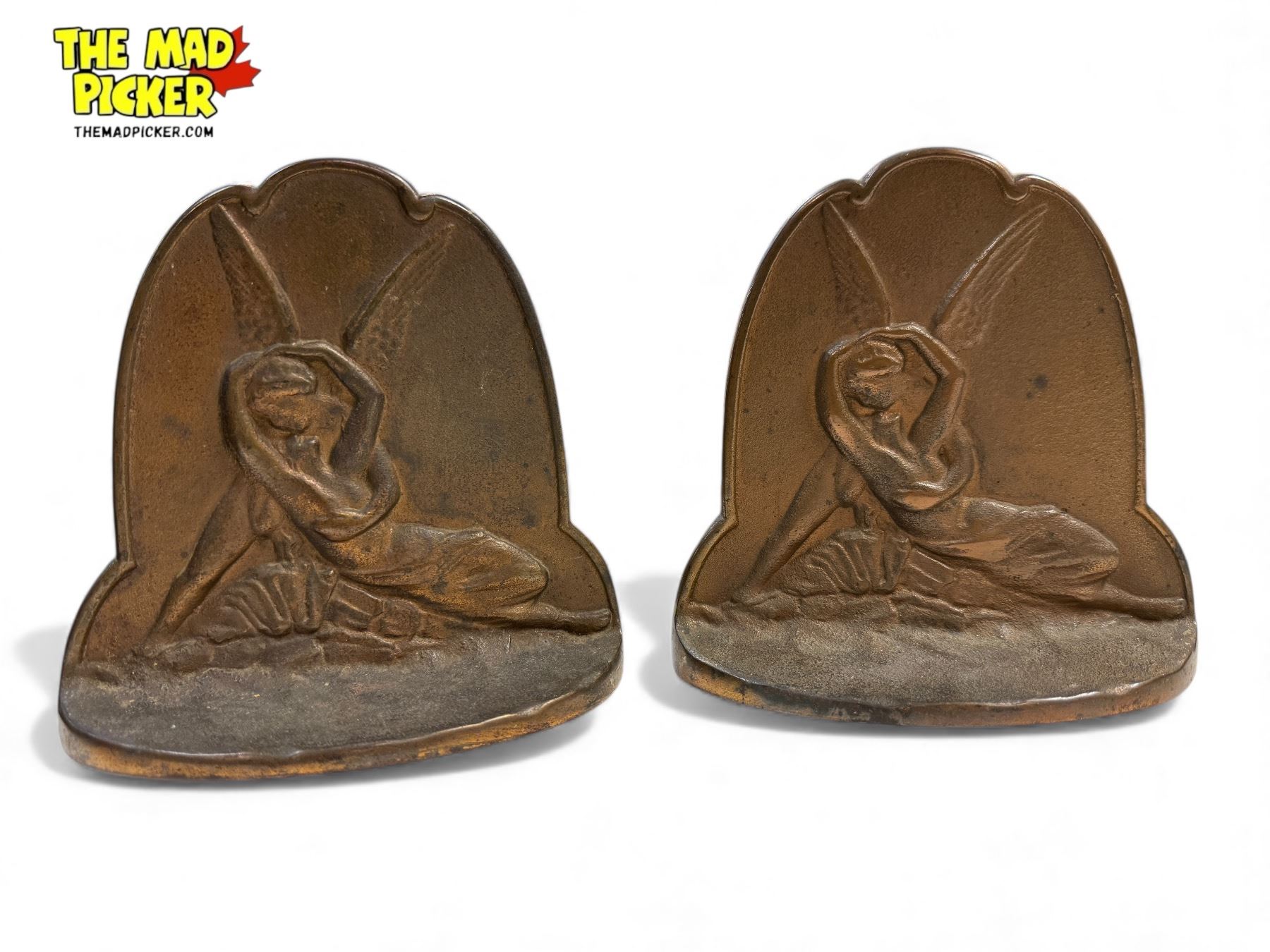 Vintage Bronze Pair Of Bookends Of Cupid & Psyche