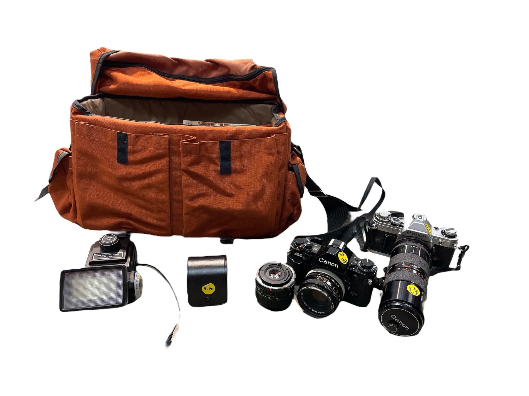 Vintage Camera Bag Full Of Cameras, Lenses, Camera Accessories, Etc.. , Cannon