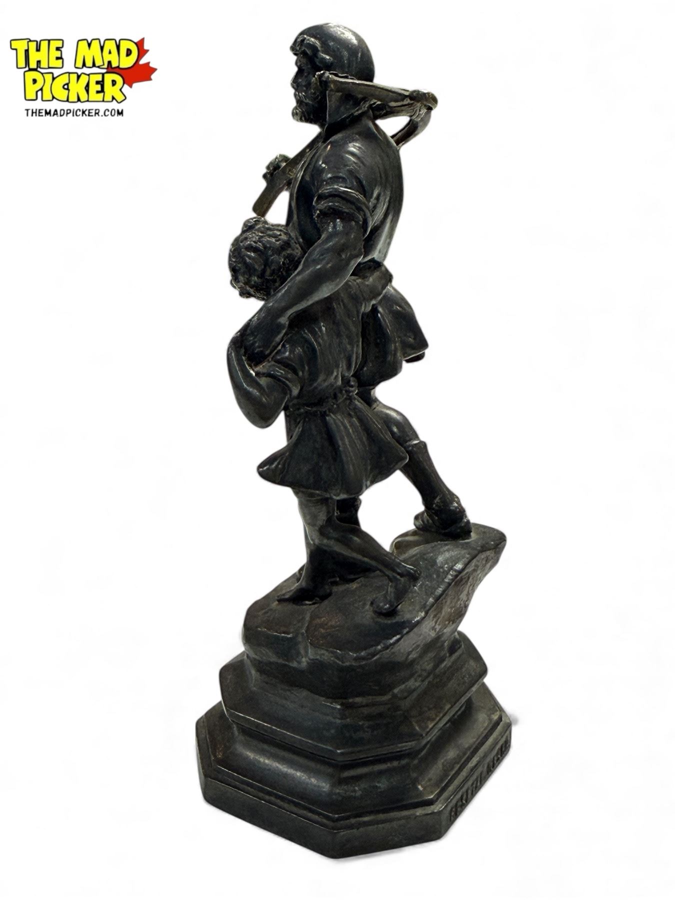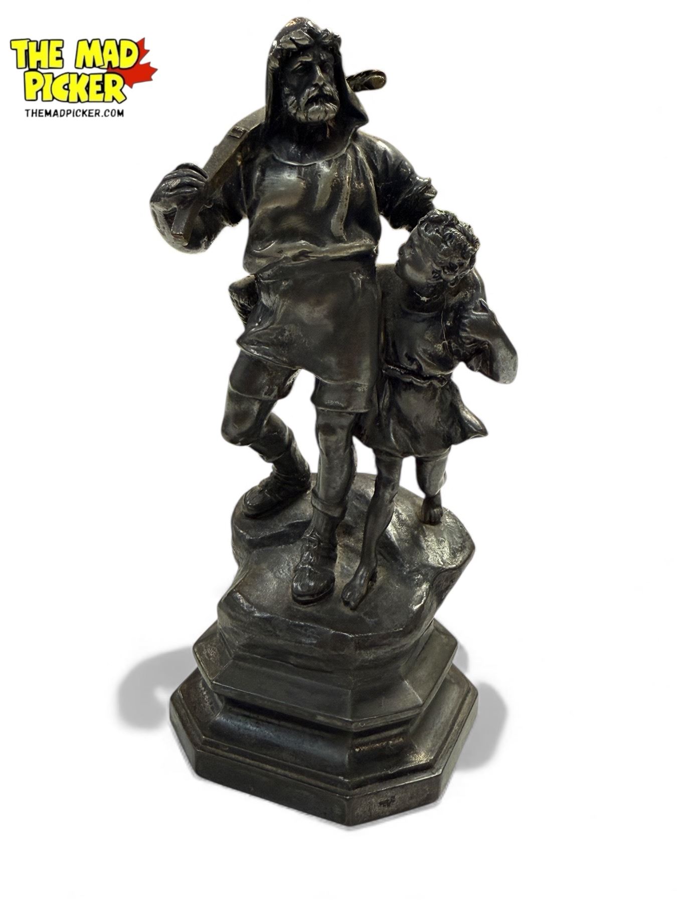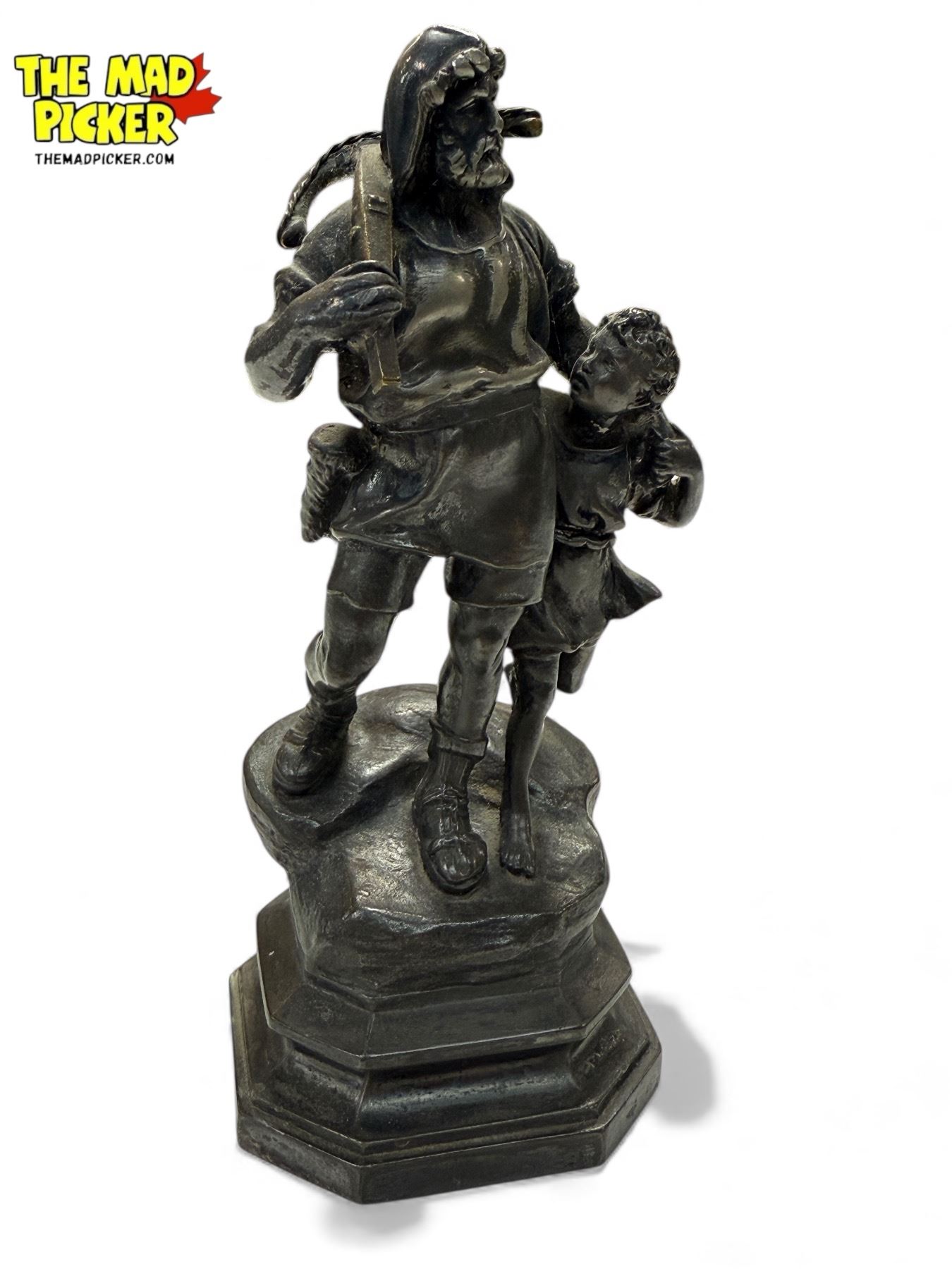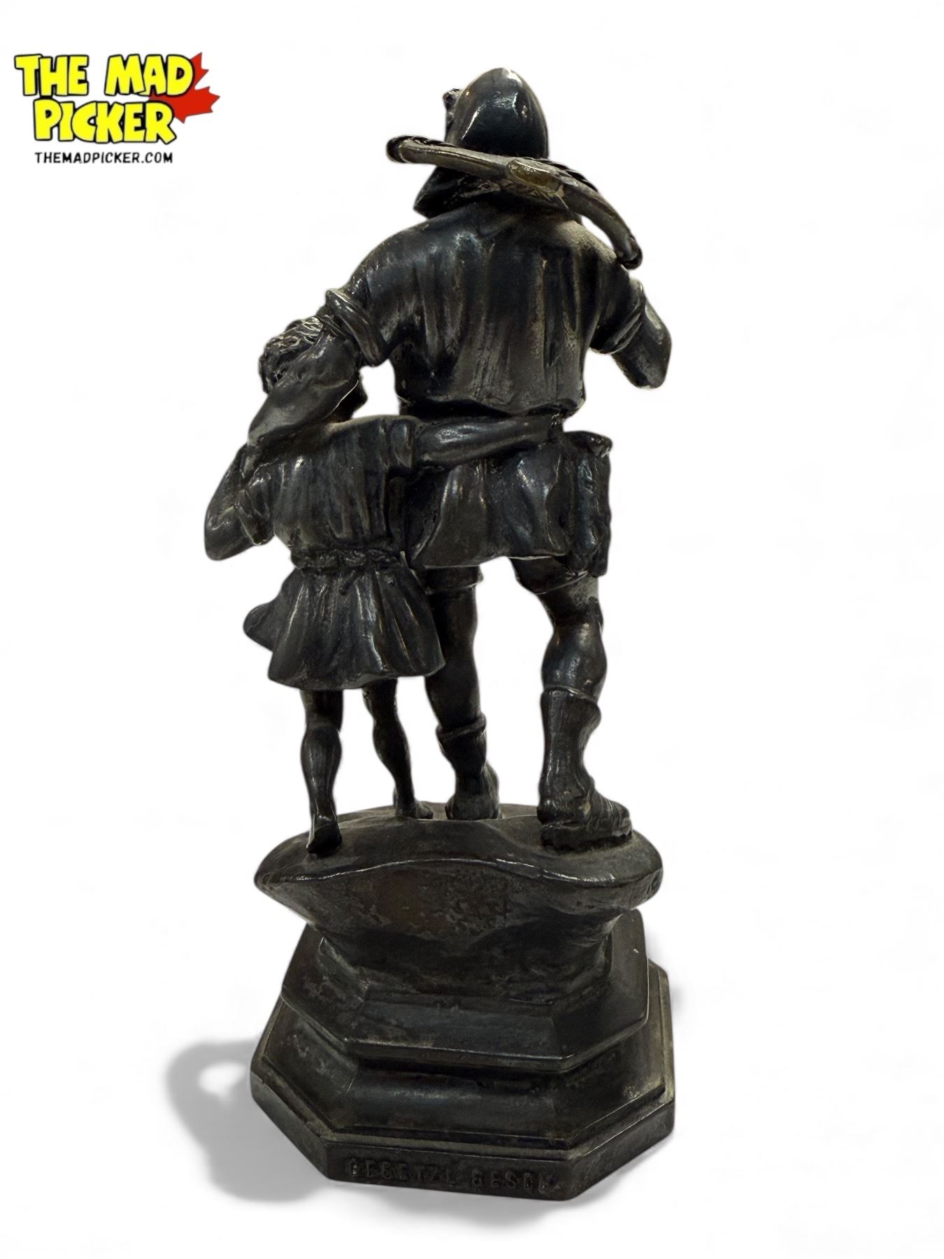 Vintage Gesetzl Gesch Metal Sculpture Of Hunter With Son