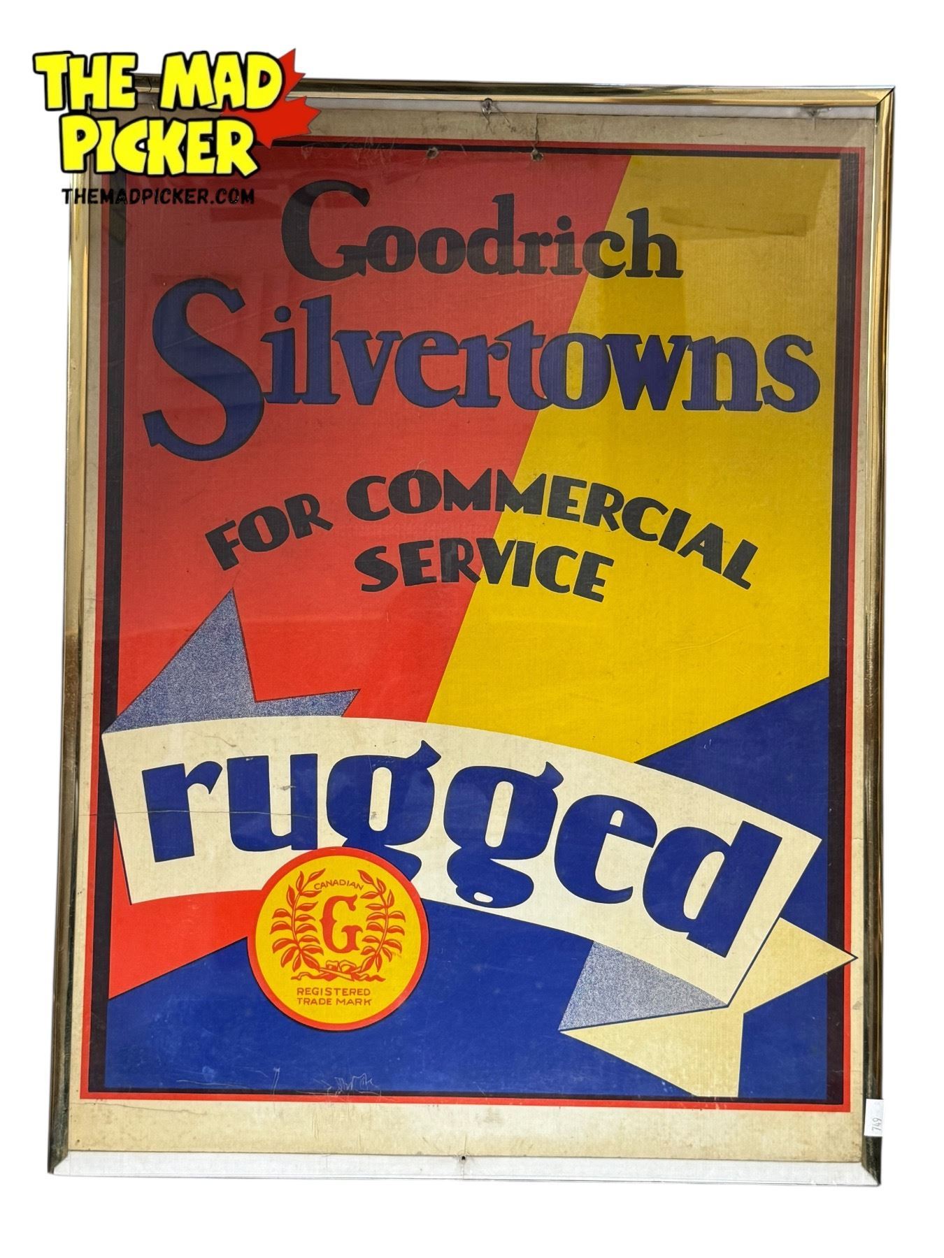 Vintage Goodrich Silvertowns For Commercial Service Rugged Cardboard Advertising Sign
