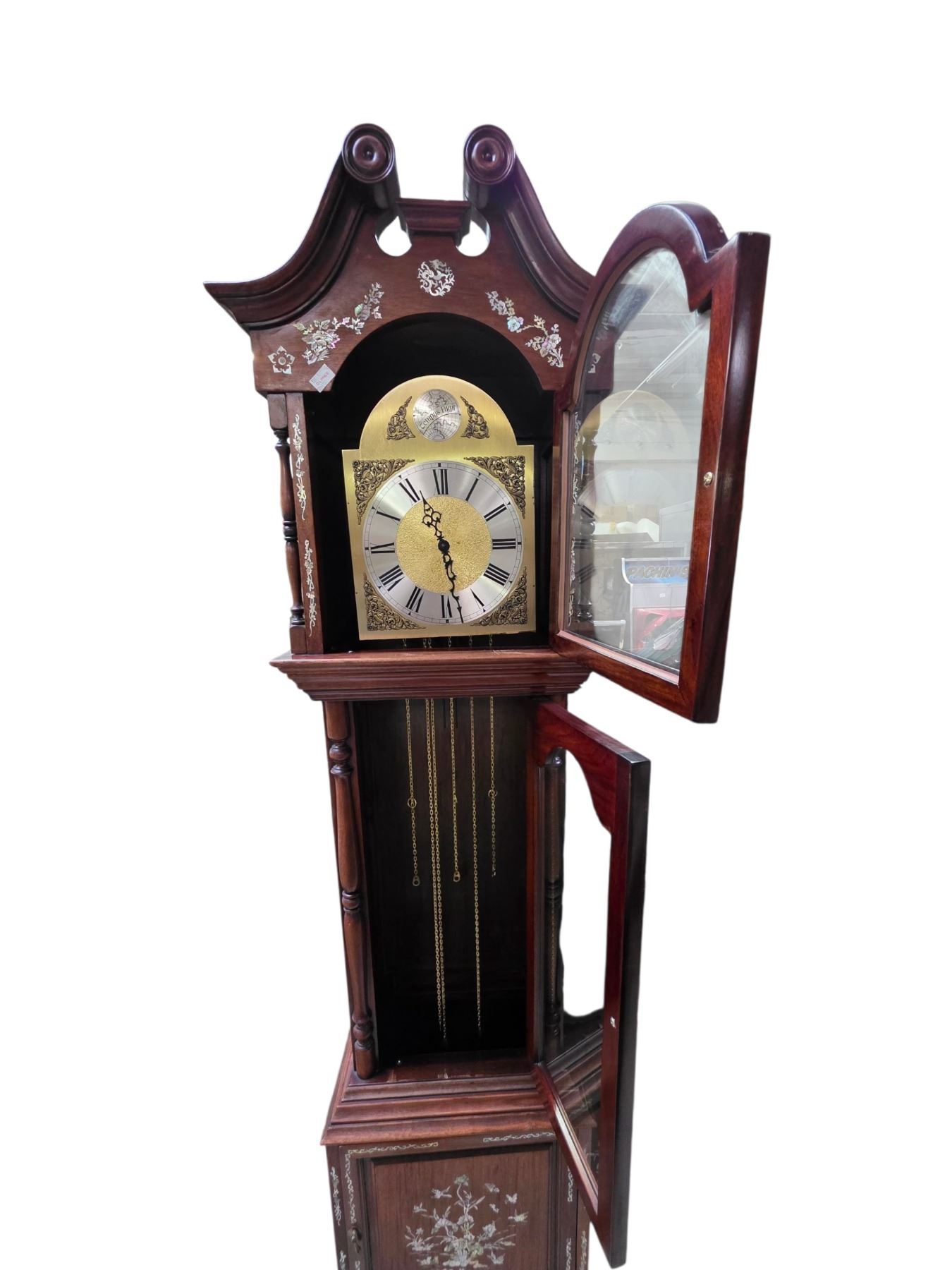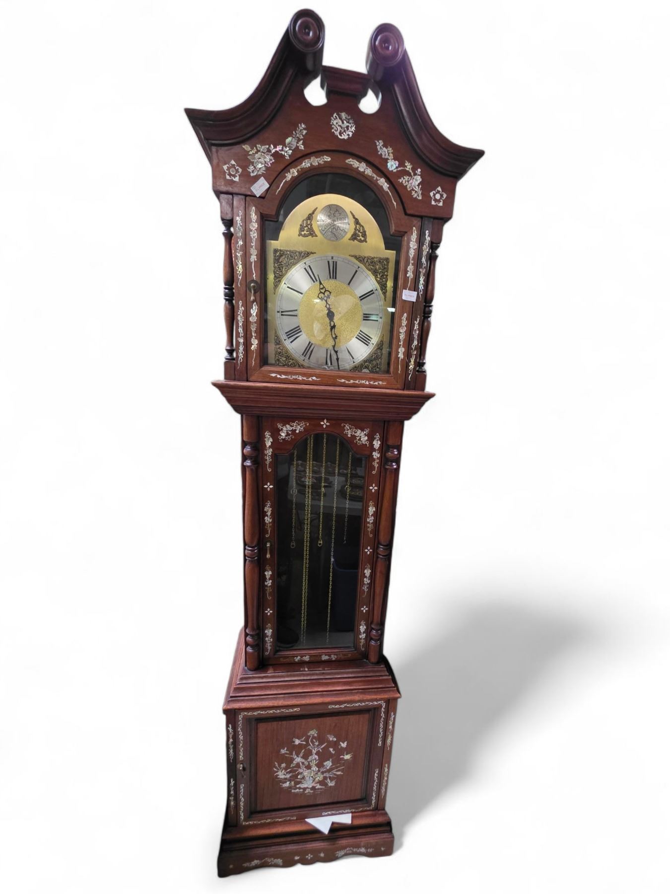 Vintage Grandfather Clock with Inlaid Grape Vine Pattern - 12" x 20" x 82" tall