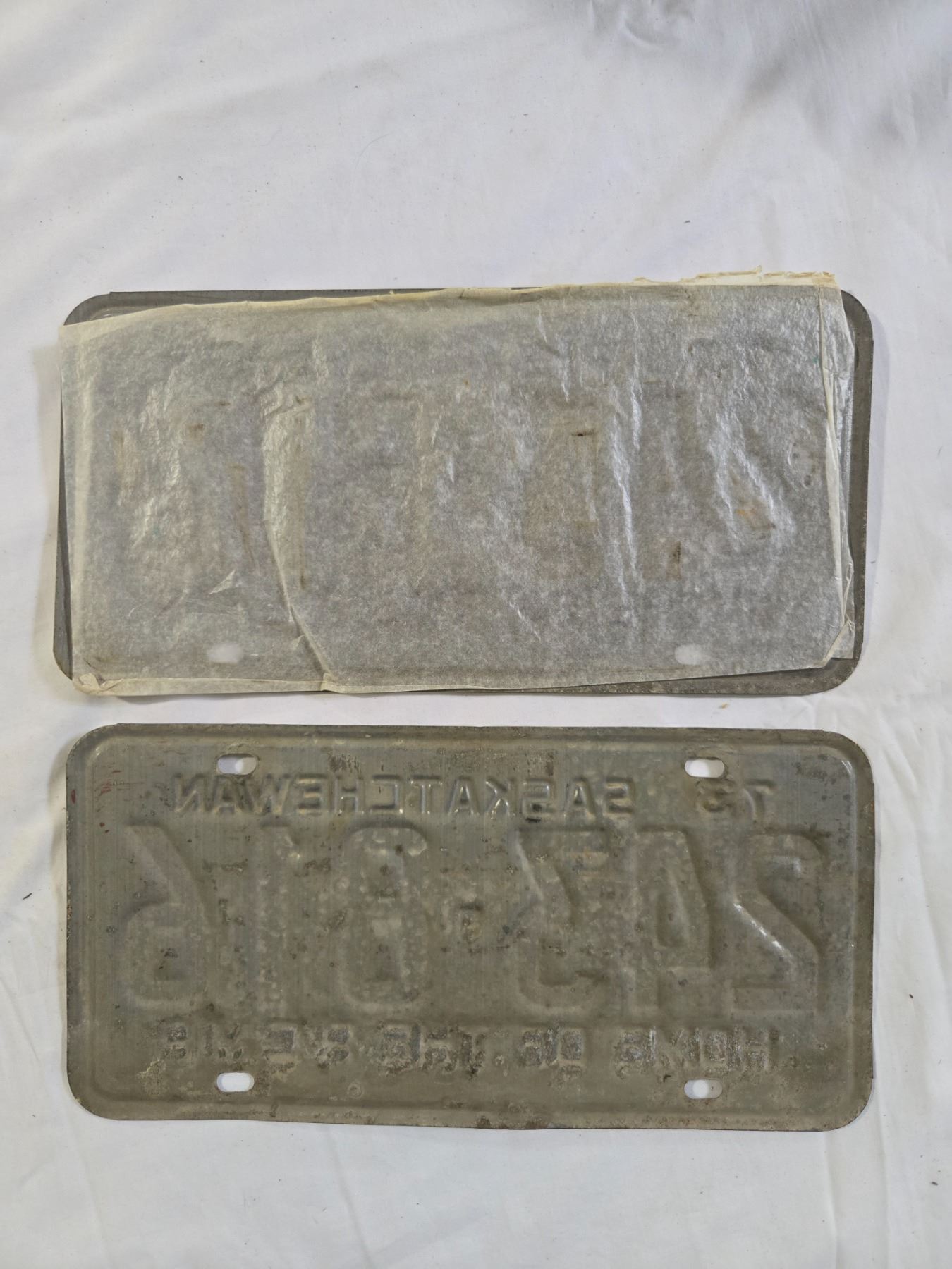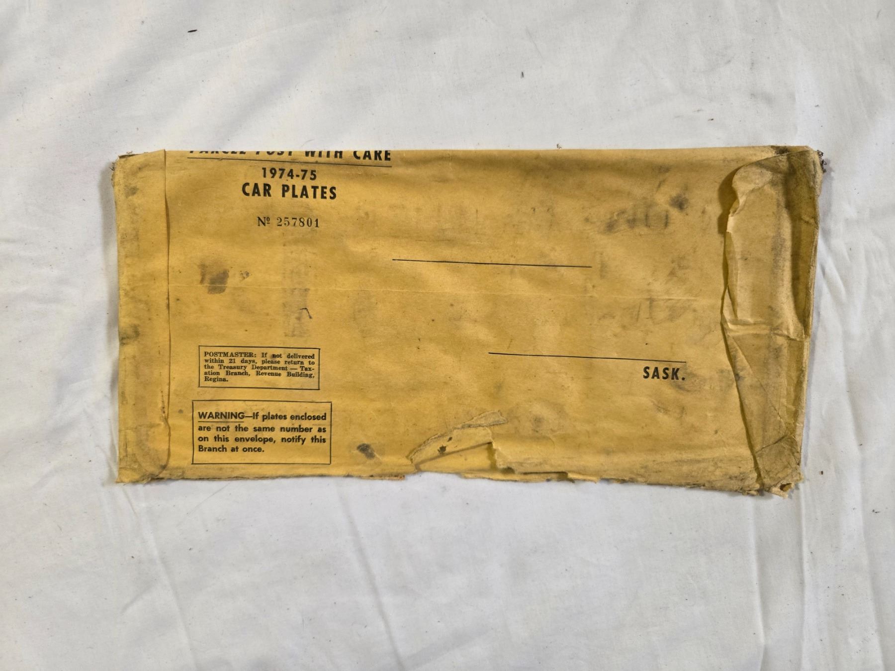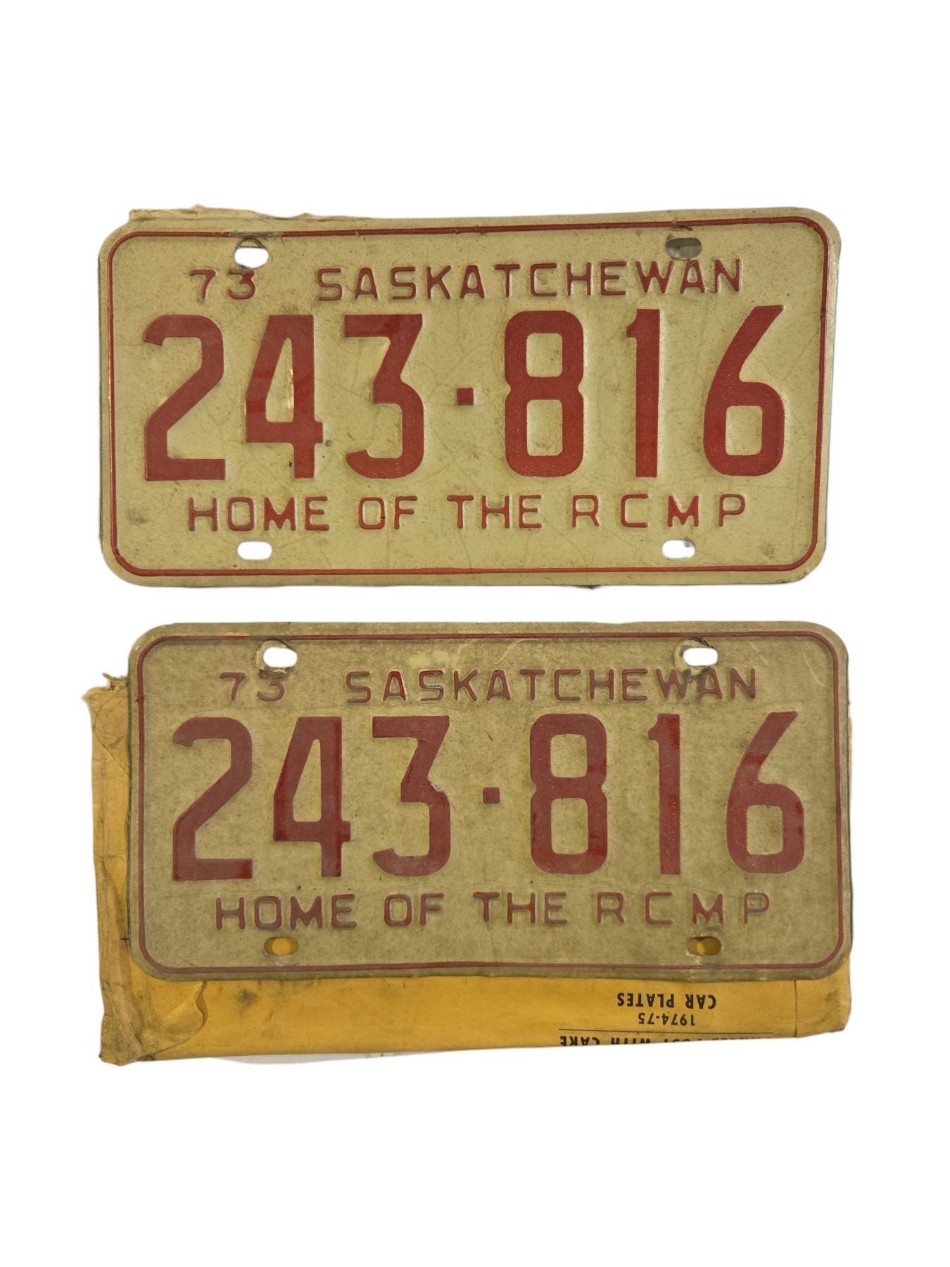 Vintage "Home of The RCMP" Saskatchewan 1973 License Plate Set w/ Original Mailing Envelope