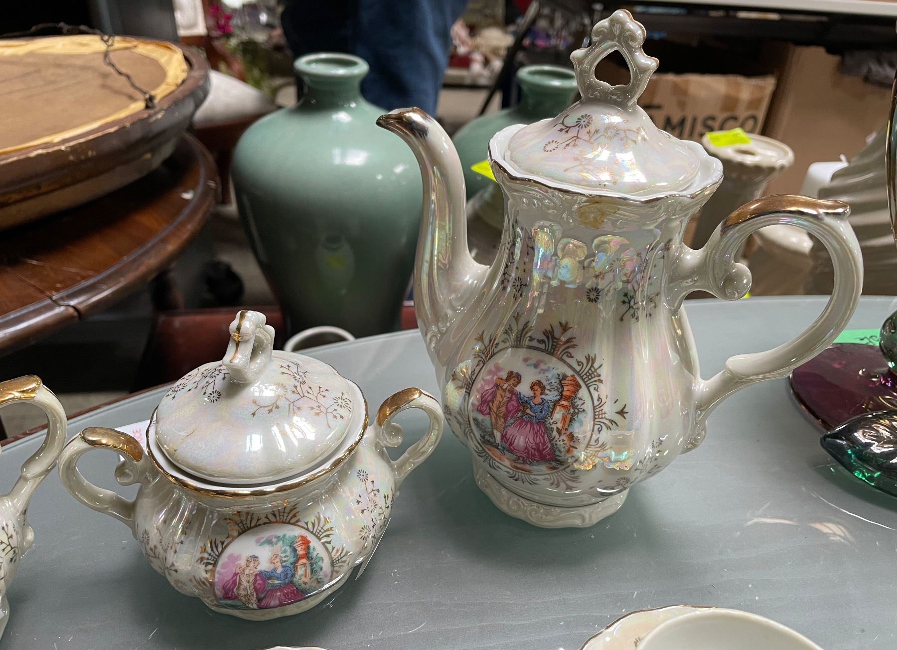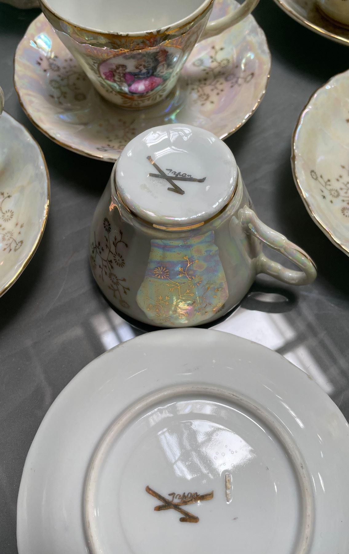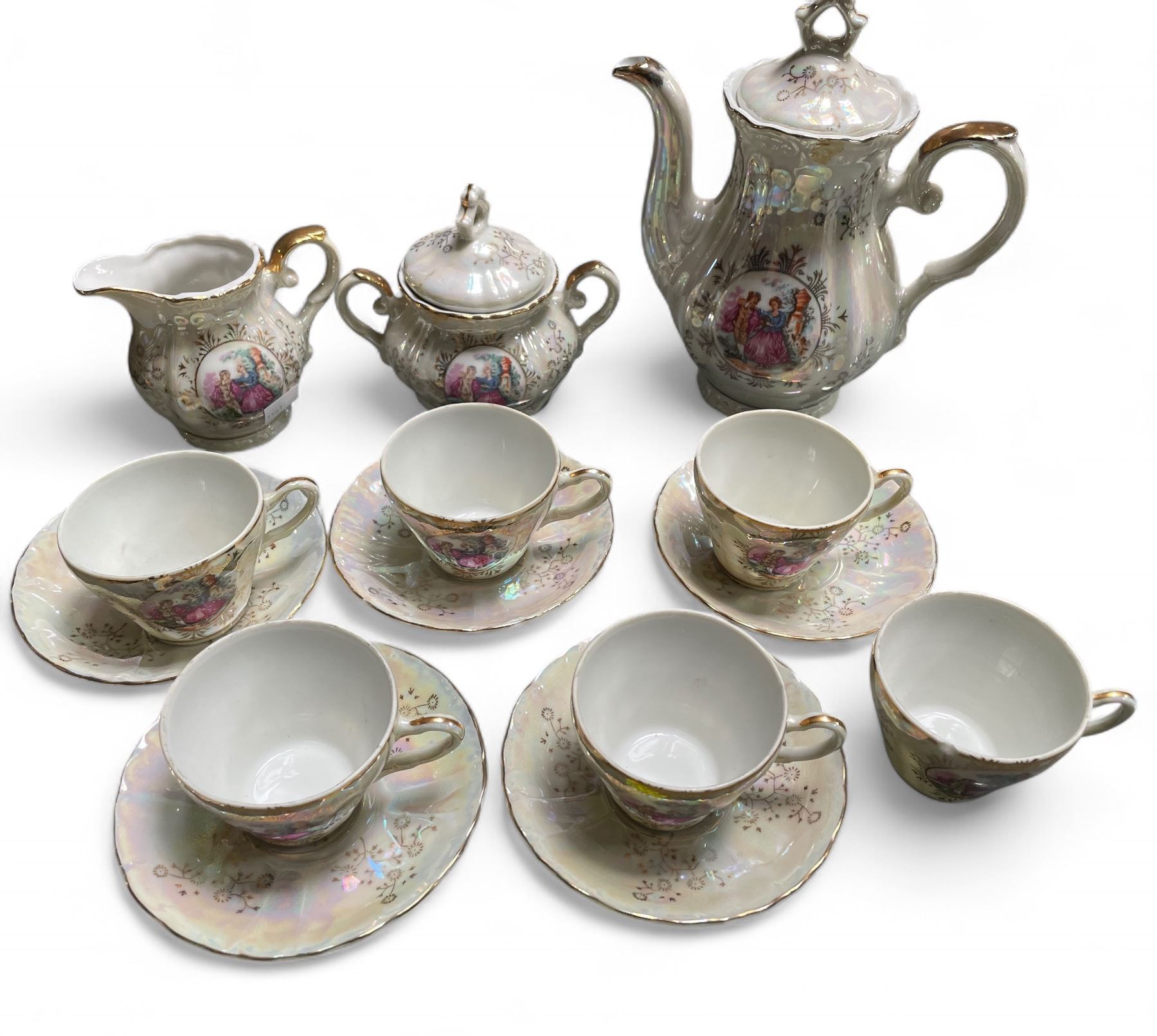 Vintage Japanese Tea Set for 6 - Tea Pot, Creamer, Sugar and 6 Cups - Missing 1 Saucer