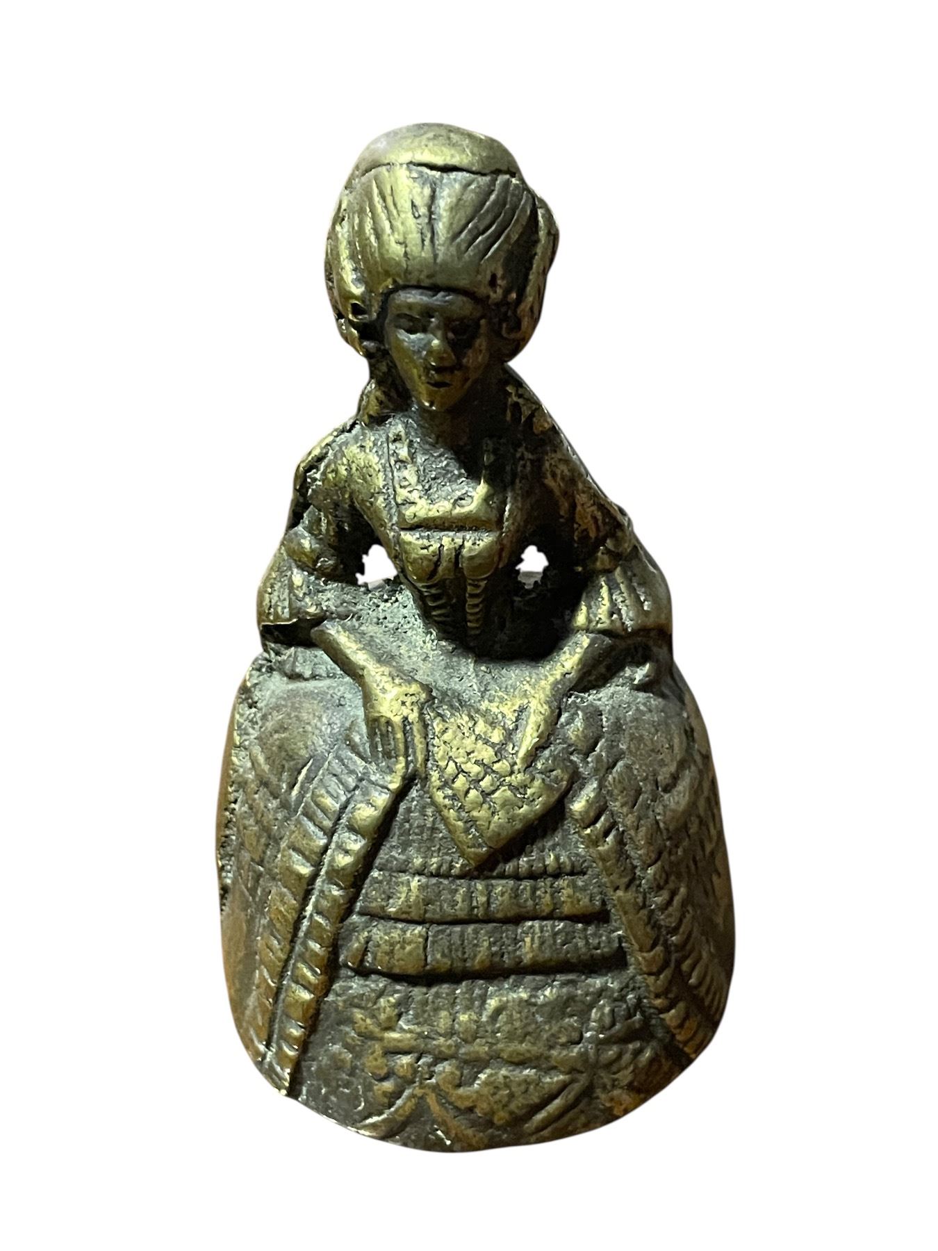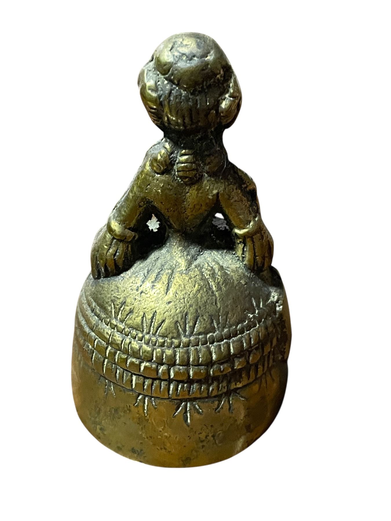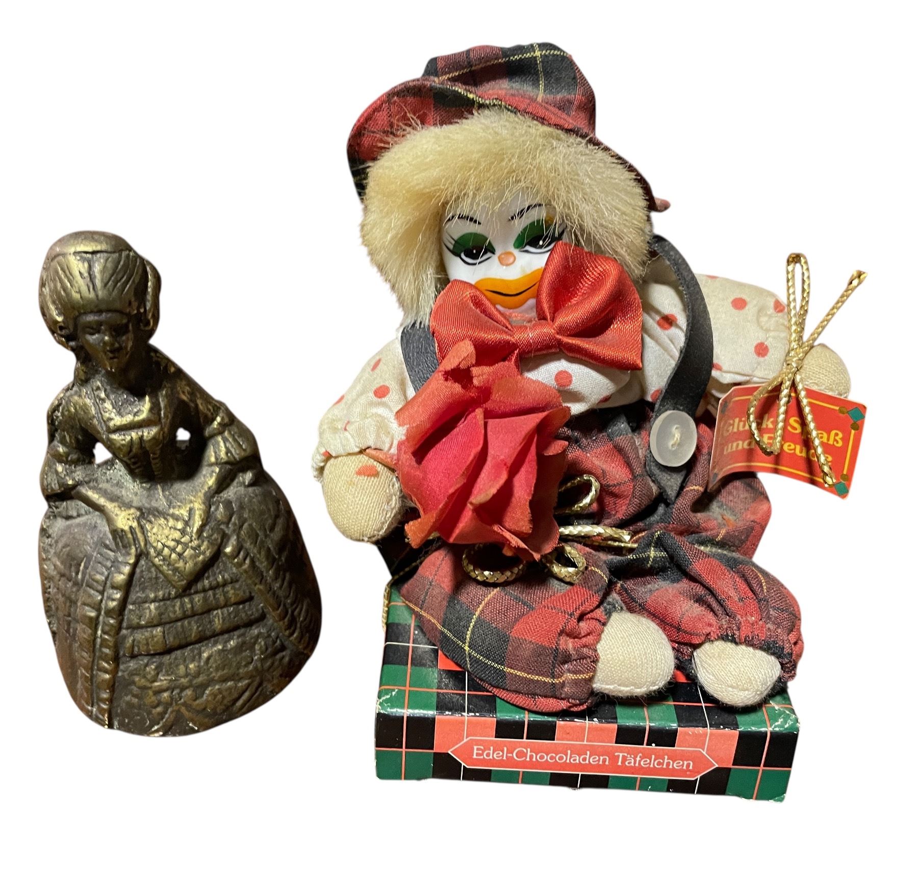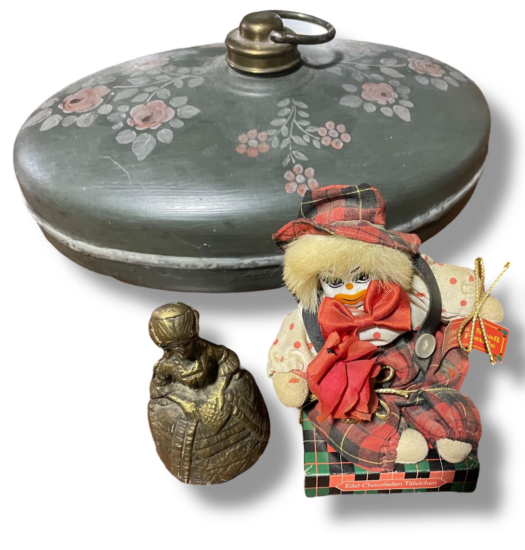Vintage Painted Metal Foot Warmer, Brass Bell & Doll