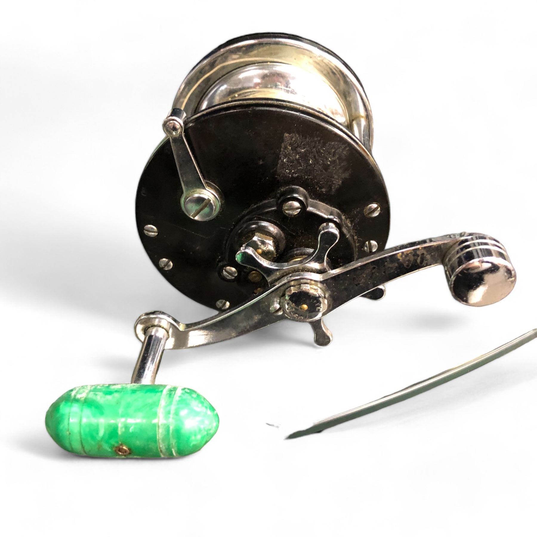 Vintage Penn Long Beach Fishing Reel With Green Bakelite Handle