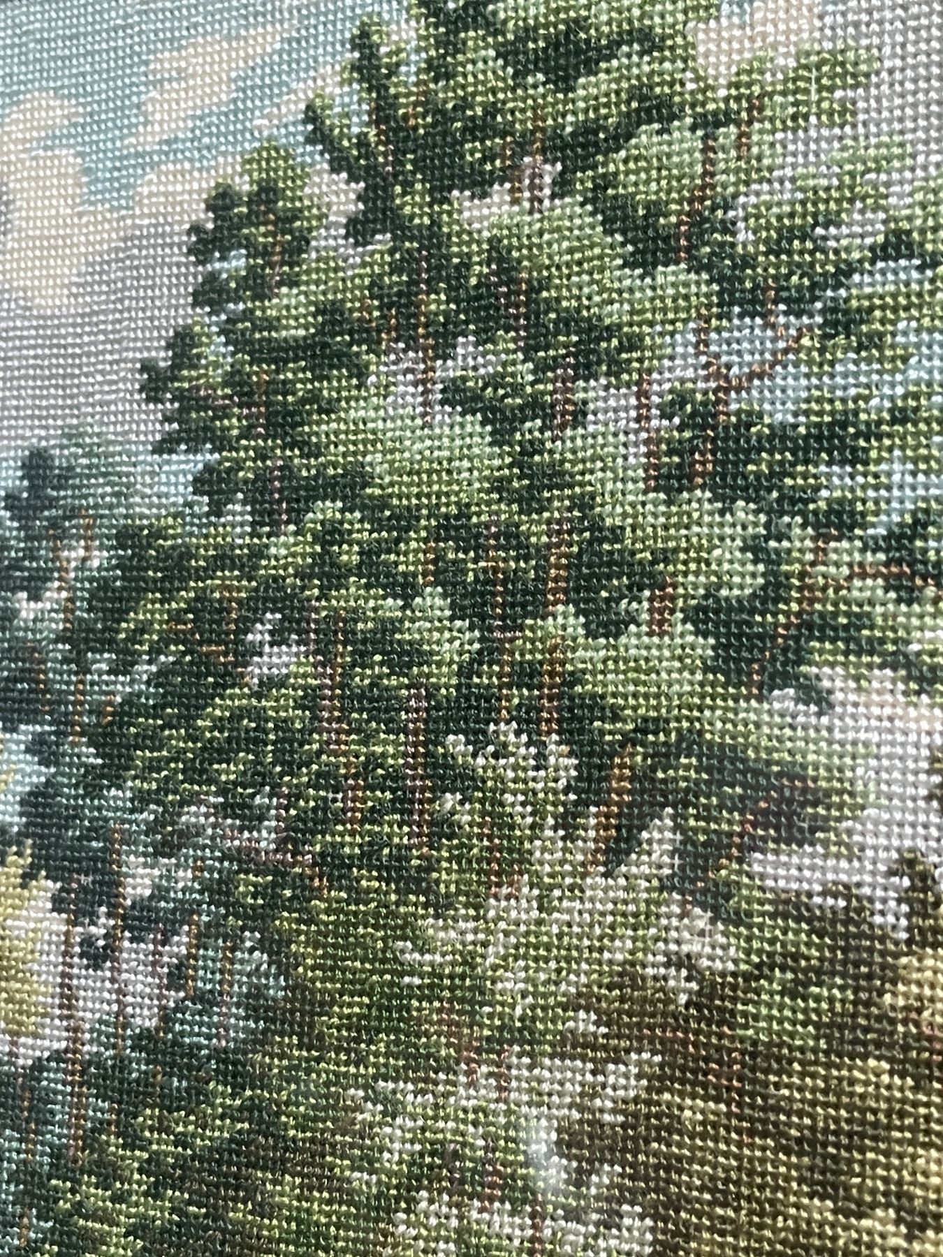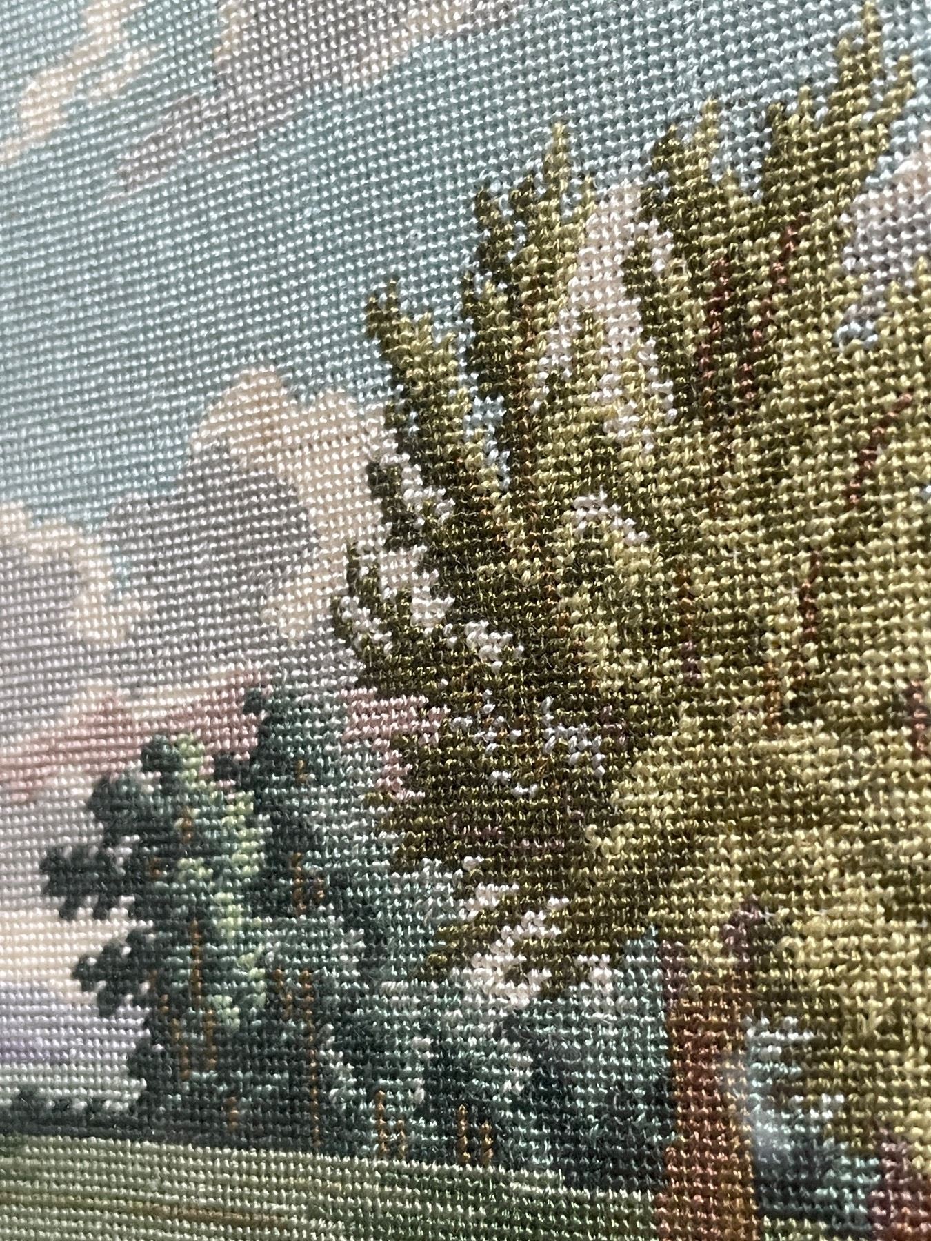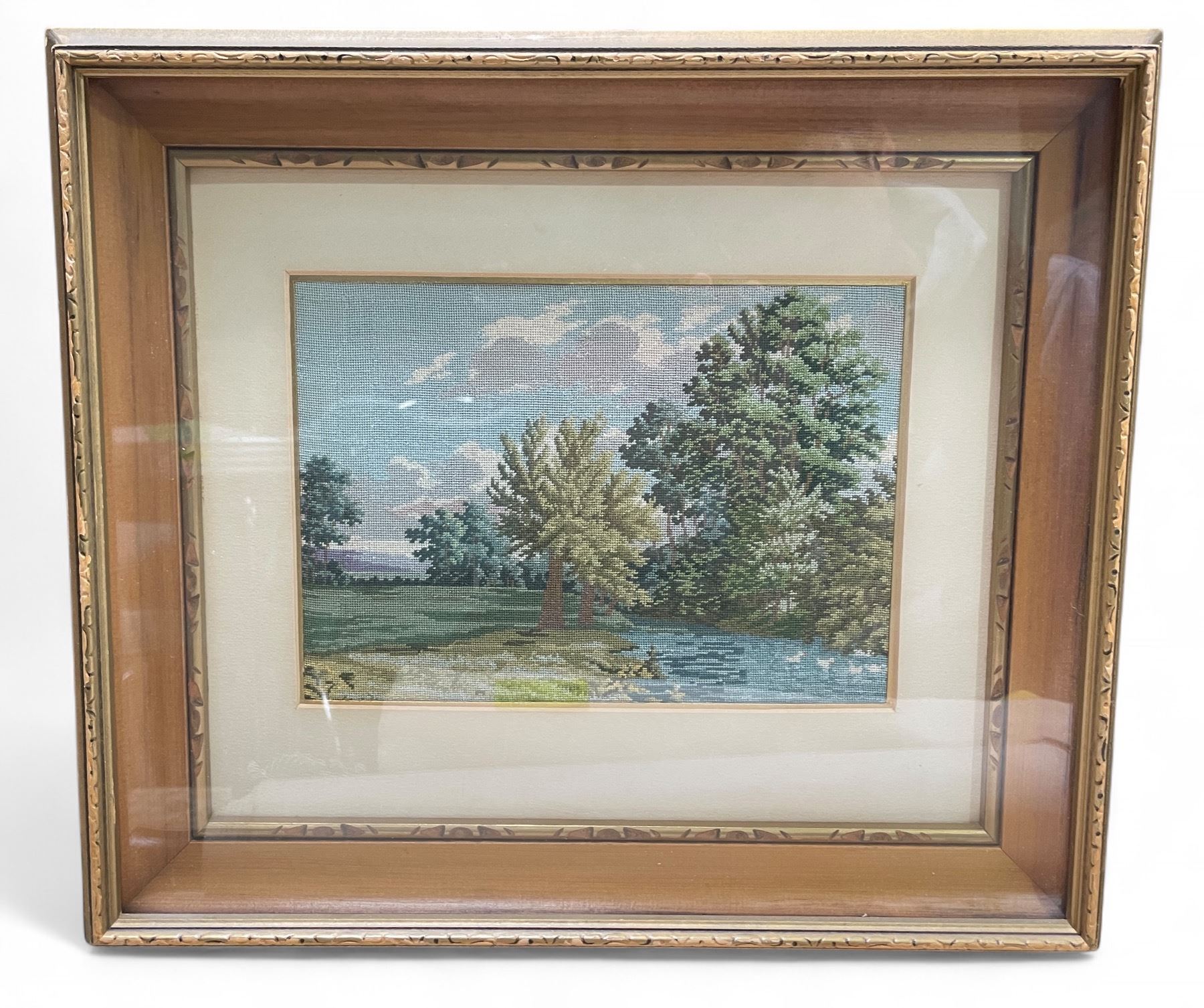 Vintage Petit Point Landscape Picture - 15" x 13" framed