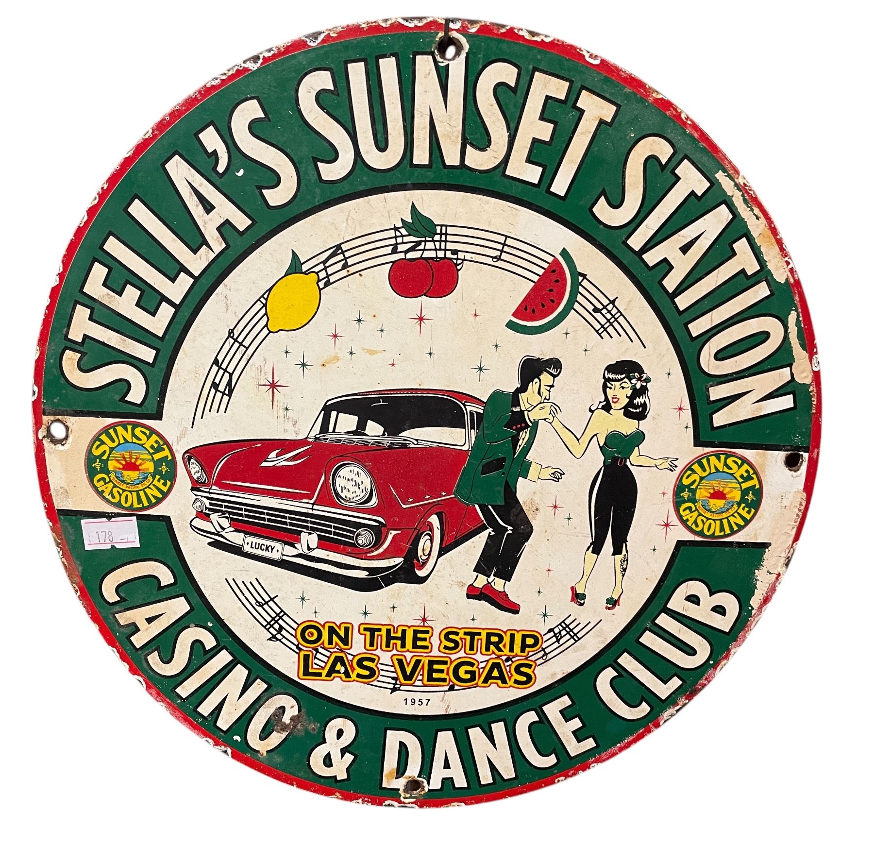 Vintage Porcelain On Steel Stella's Sunset Station Advertising Sign