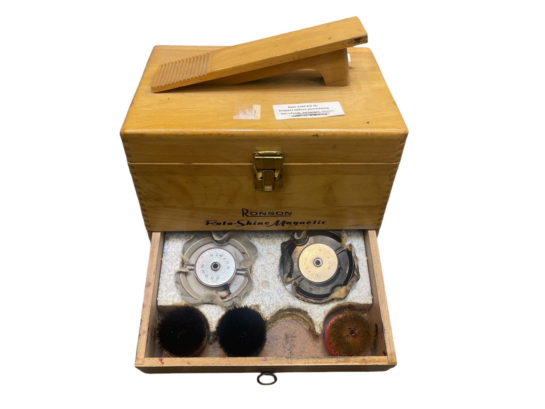 Vintage Ronson Roto Shine Magnetic Shoe Polishing Case With Contents And Foot Rest Handle