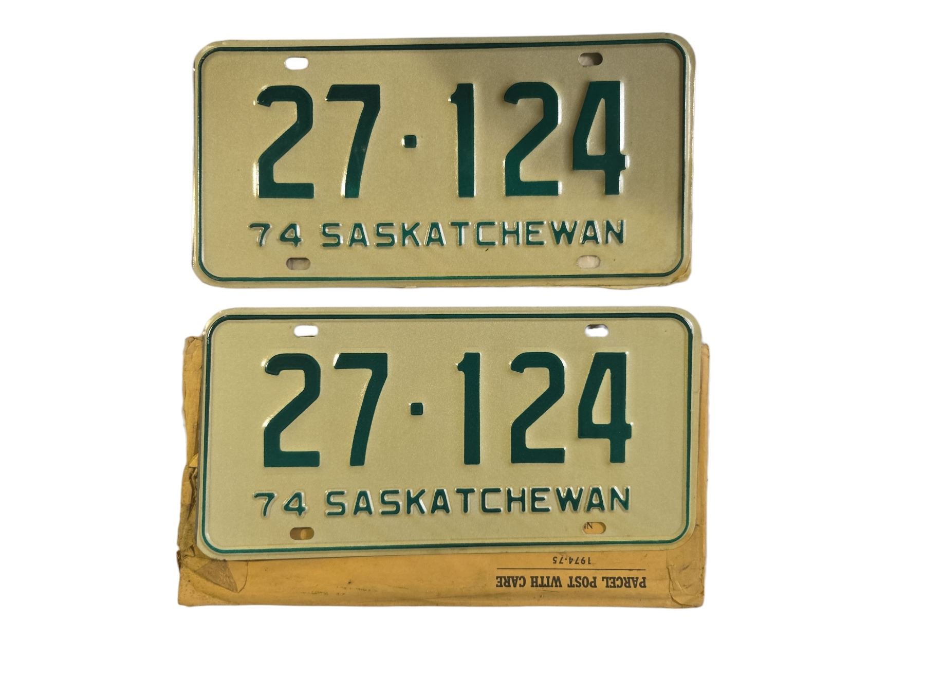 Vintage Saskatchewan 1974 License Plate Set w/ Original Mailing Envelope - 27-124