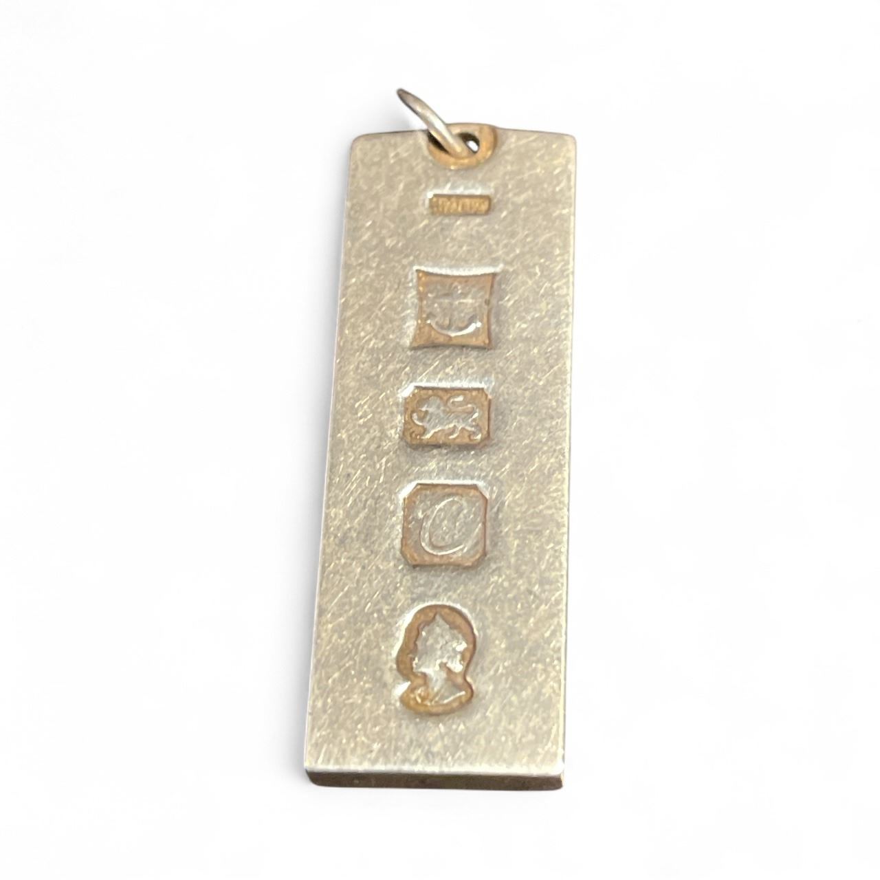 Vintage Sterling Silver Vertical Bar Pendant with British Hallmarks - 44mm x 14.8mm x 4.2mm - Weight: 27 grams