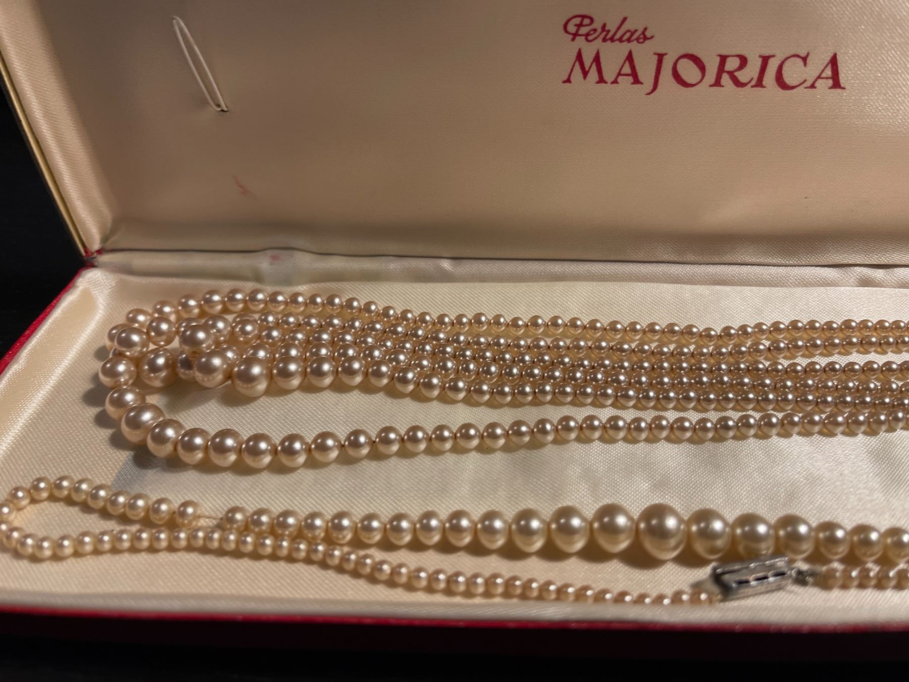Vintage Triple Strand and Single Strand of Graduated Majorica Pearls - Largest pearls are 8mm
