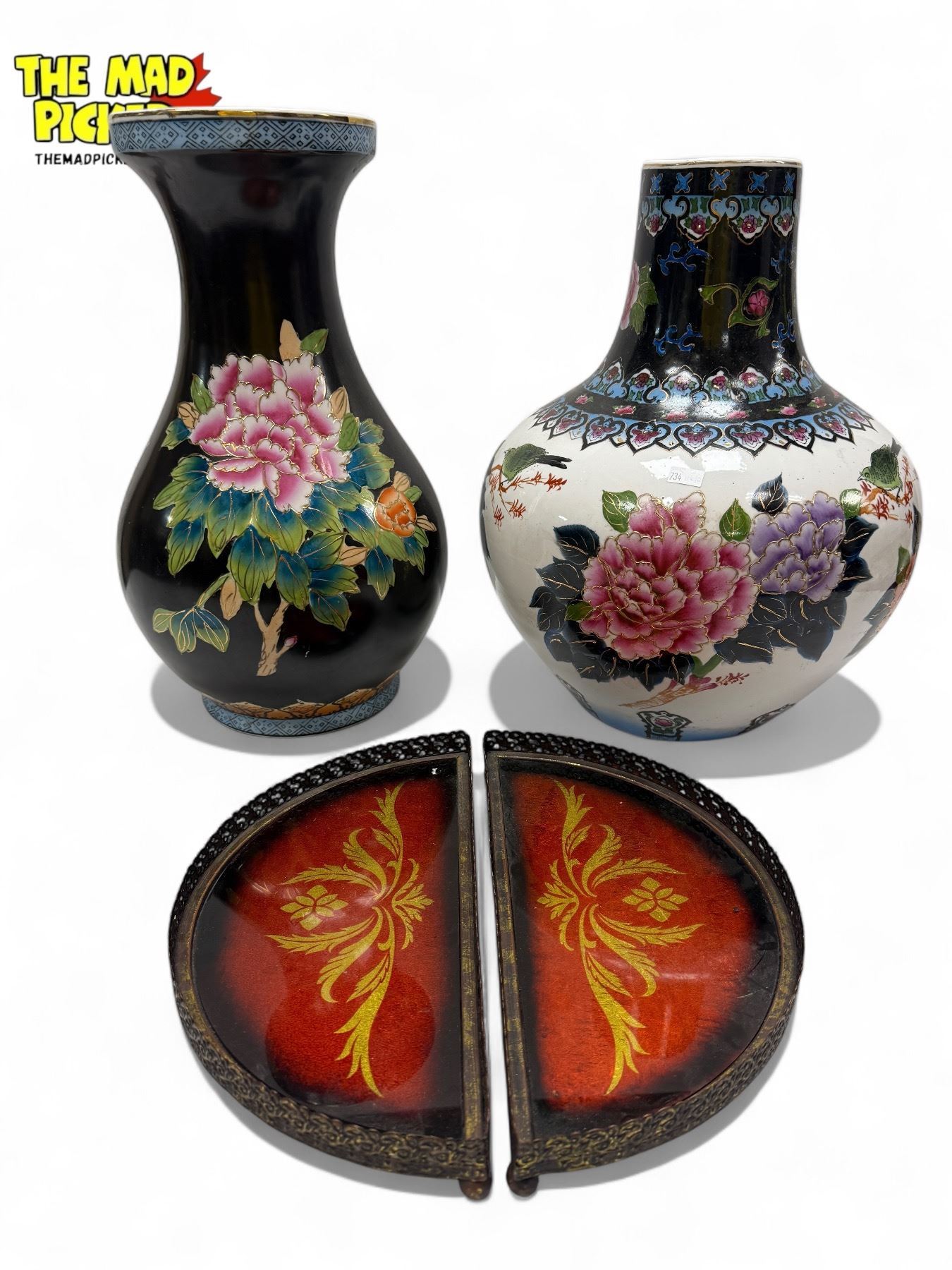 Vintage Variety : 2x Asian Porcelain Floral Vases & 2x Piece Trinket Trays