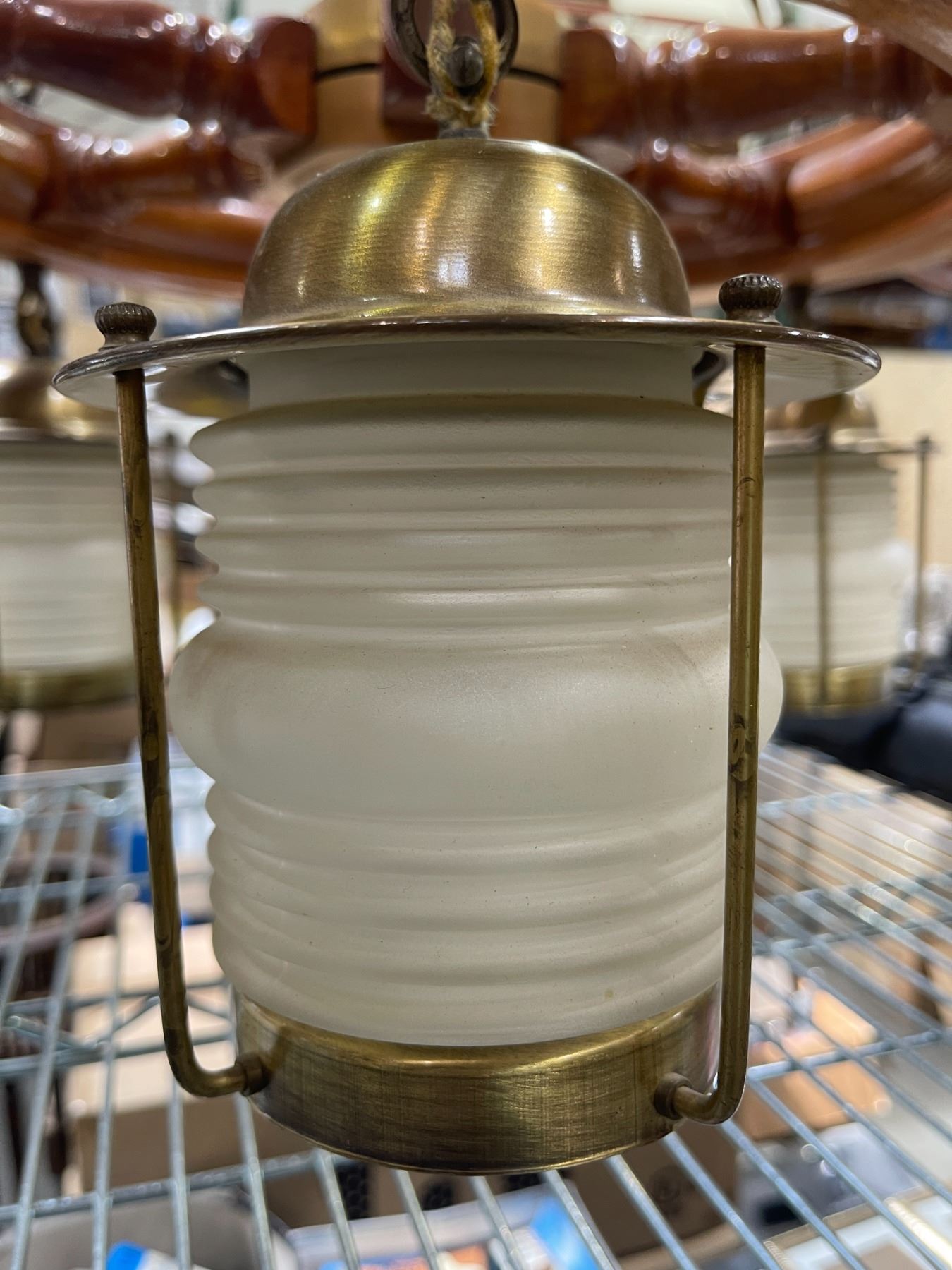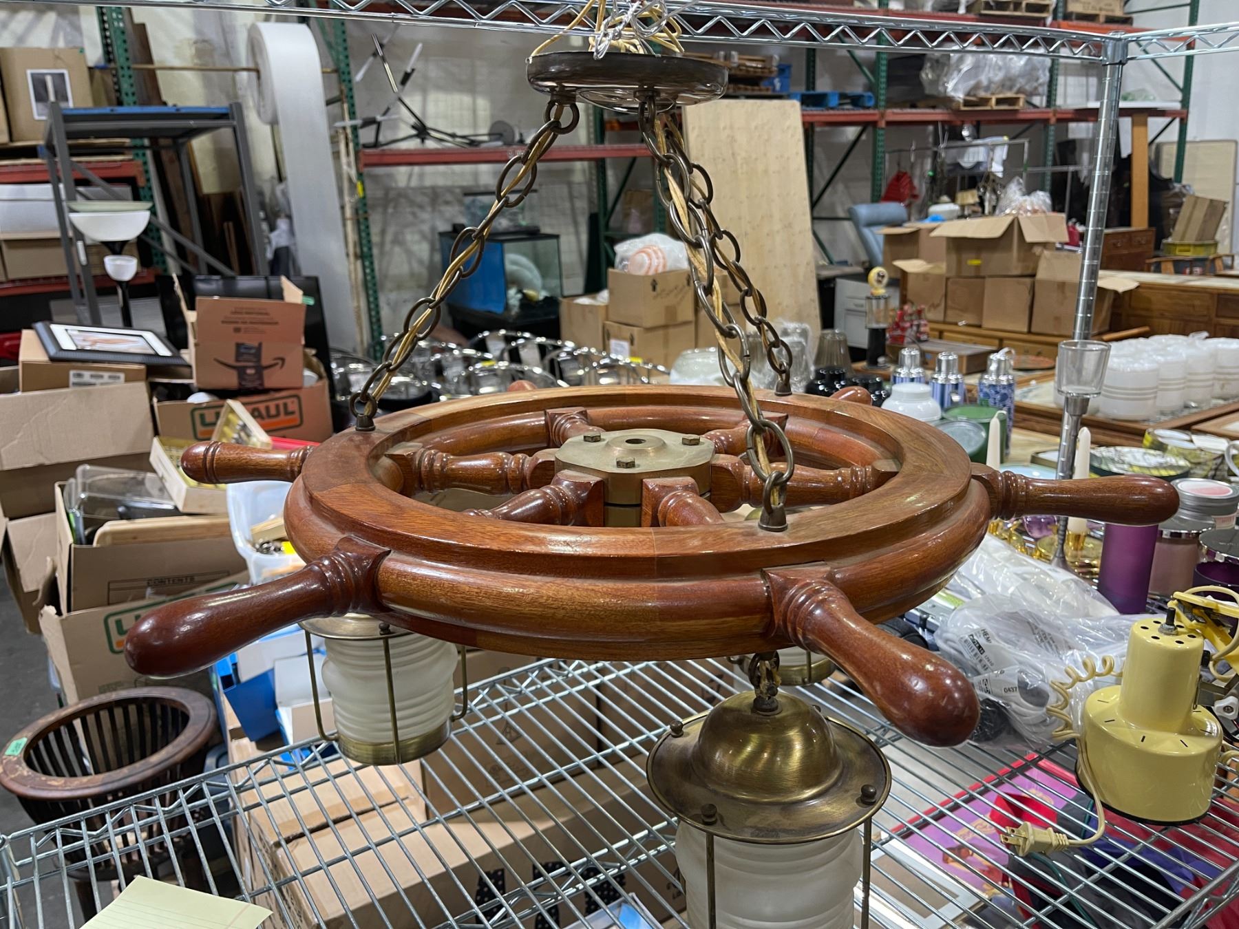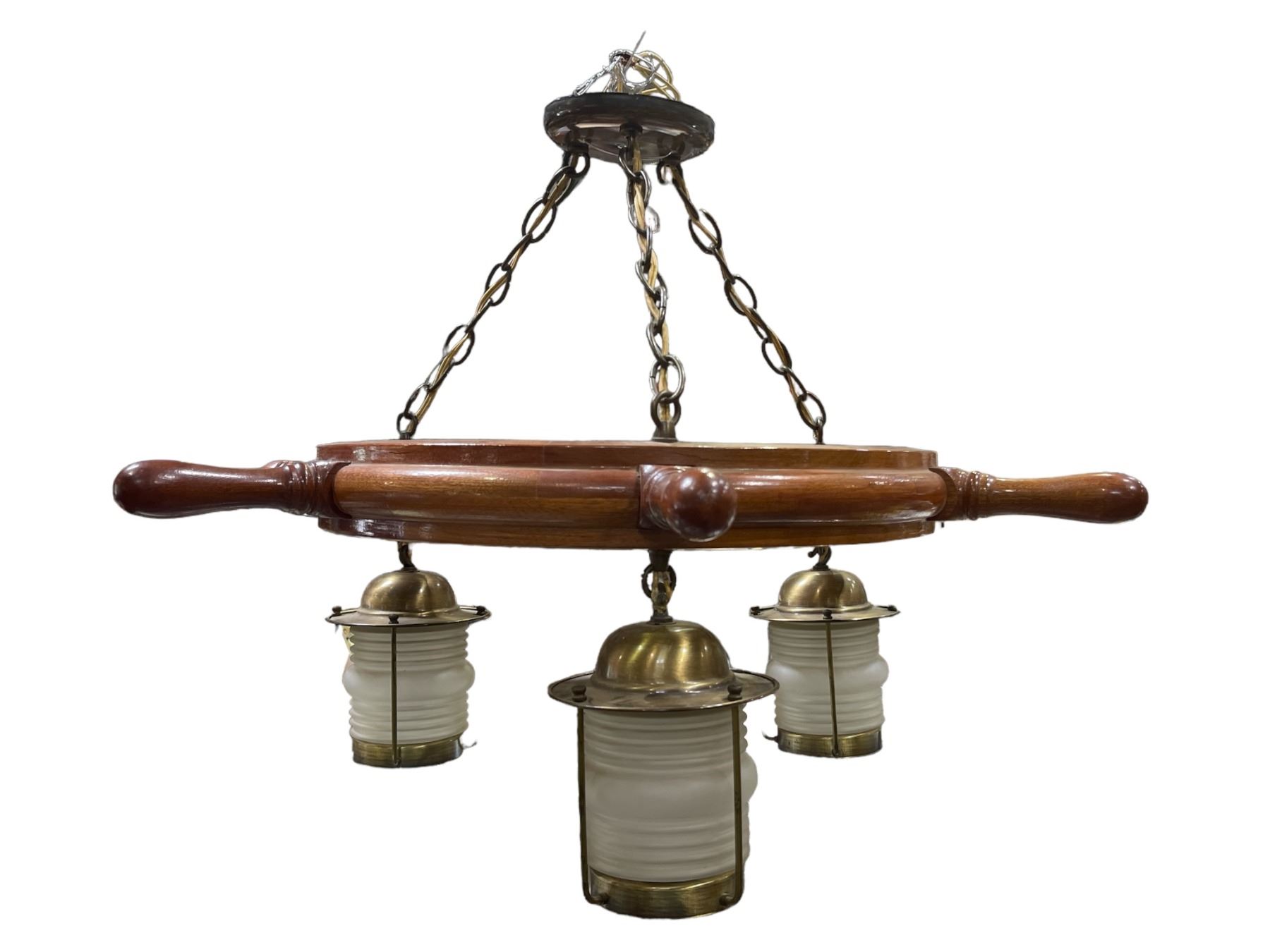 Vintage wooden ship wheel chandelier w/ 3 lights