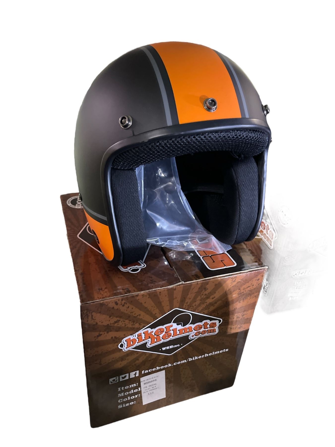 WSB Inc. "Sick Lid" Biker Helmet w/ Visor (Open Face / Black & Harley Orange) (Size XXS)
