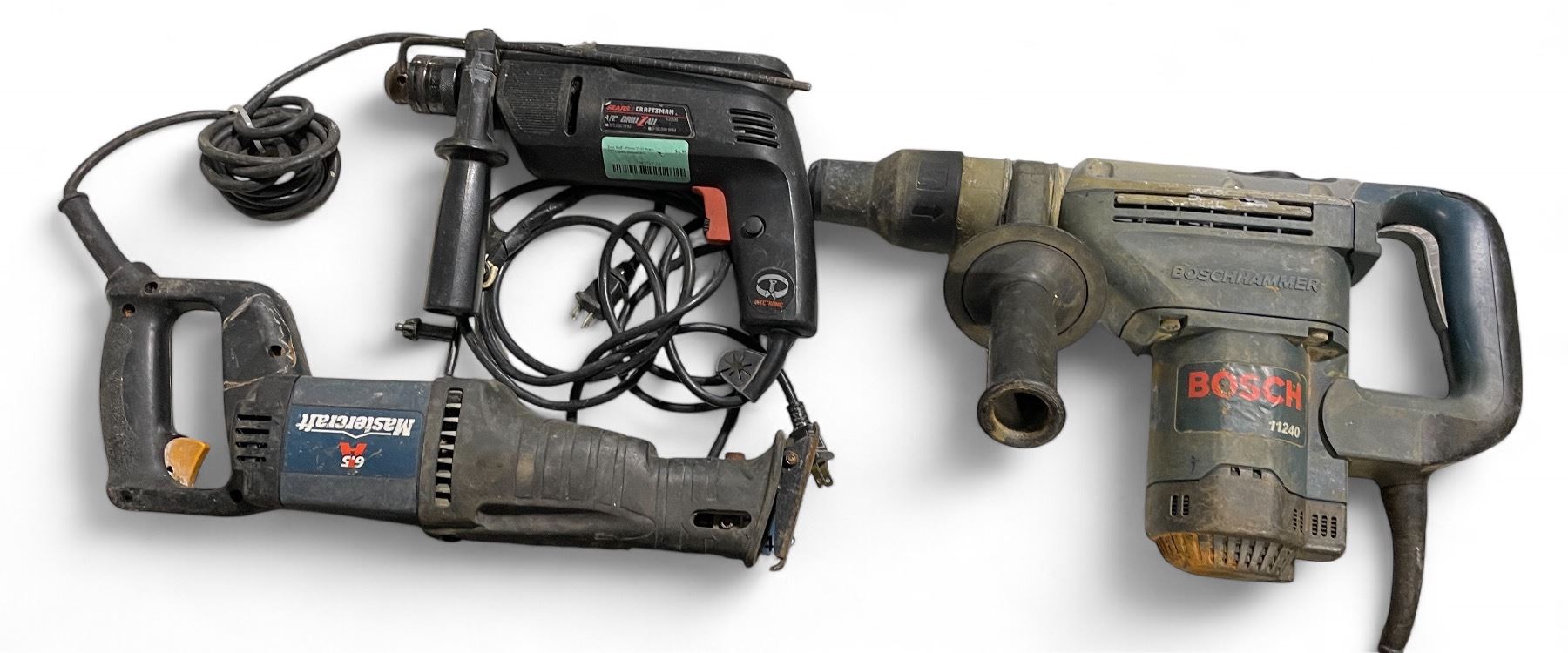 Group of 3 Tools - includes Bosch 11240 SDDS-Max Hammer/Mastercraft Reciprocating Saw & Black & Decker Hammer Drill (Untested)