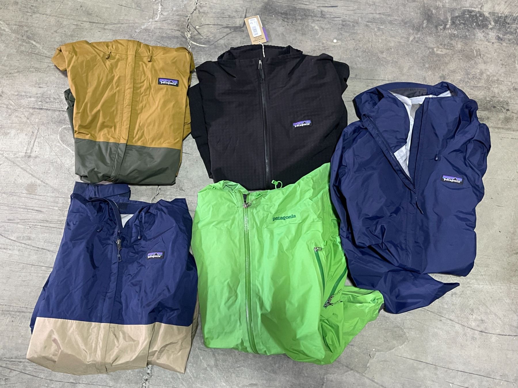 x5 Patagonia Jackets (Mens) - Approx Value : $920 - Green (L) - Blue/Tan (L) - Tan/Grey (L) - Blue (S) w/tags - Black (L) w/tags